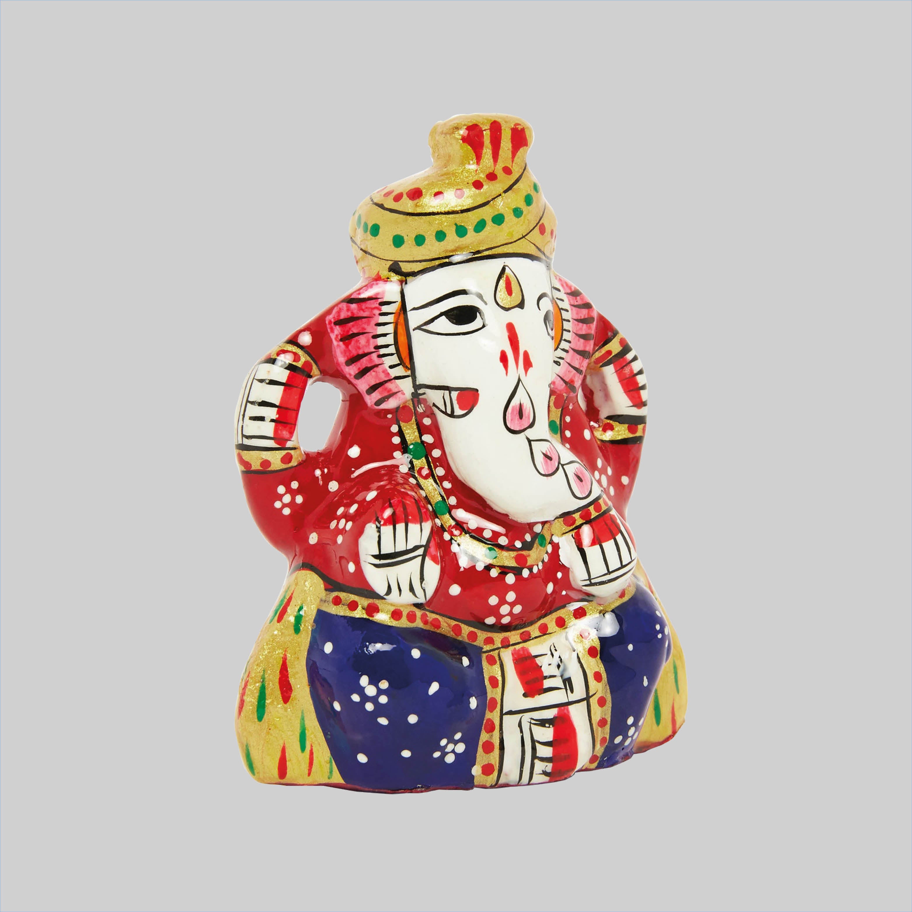 Metal Enamel Handpainted Ganesha with Turban 2.5 in