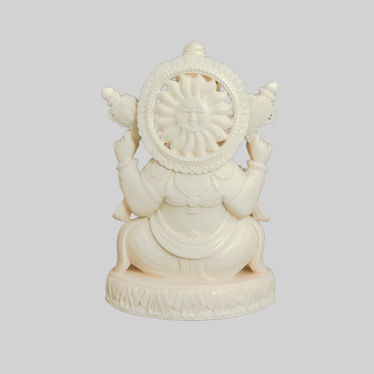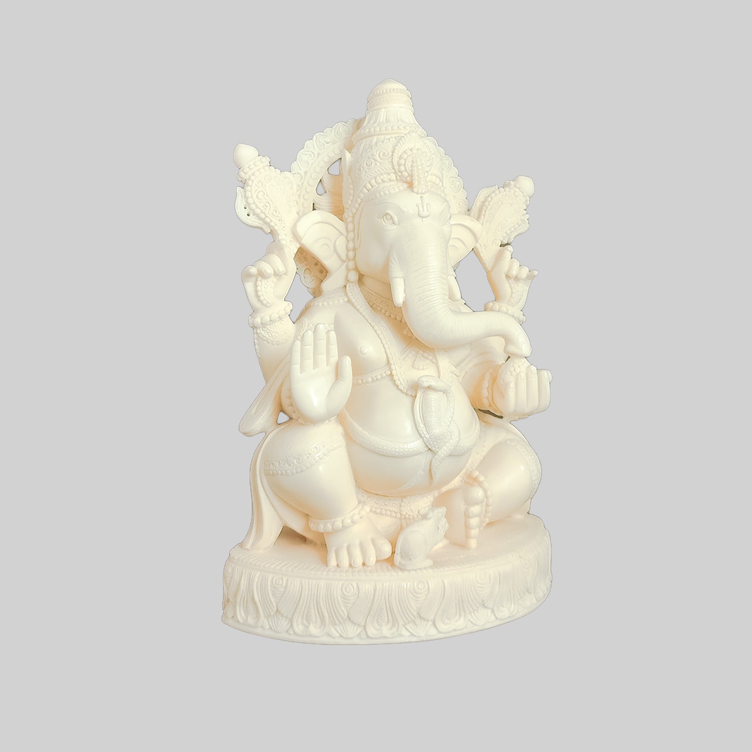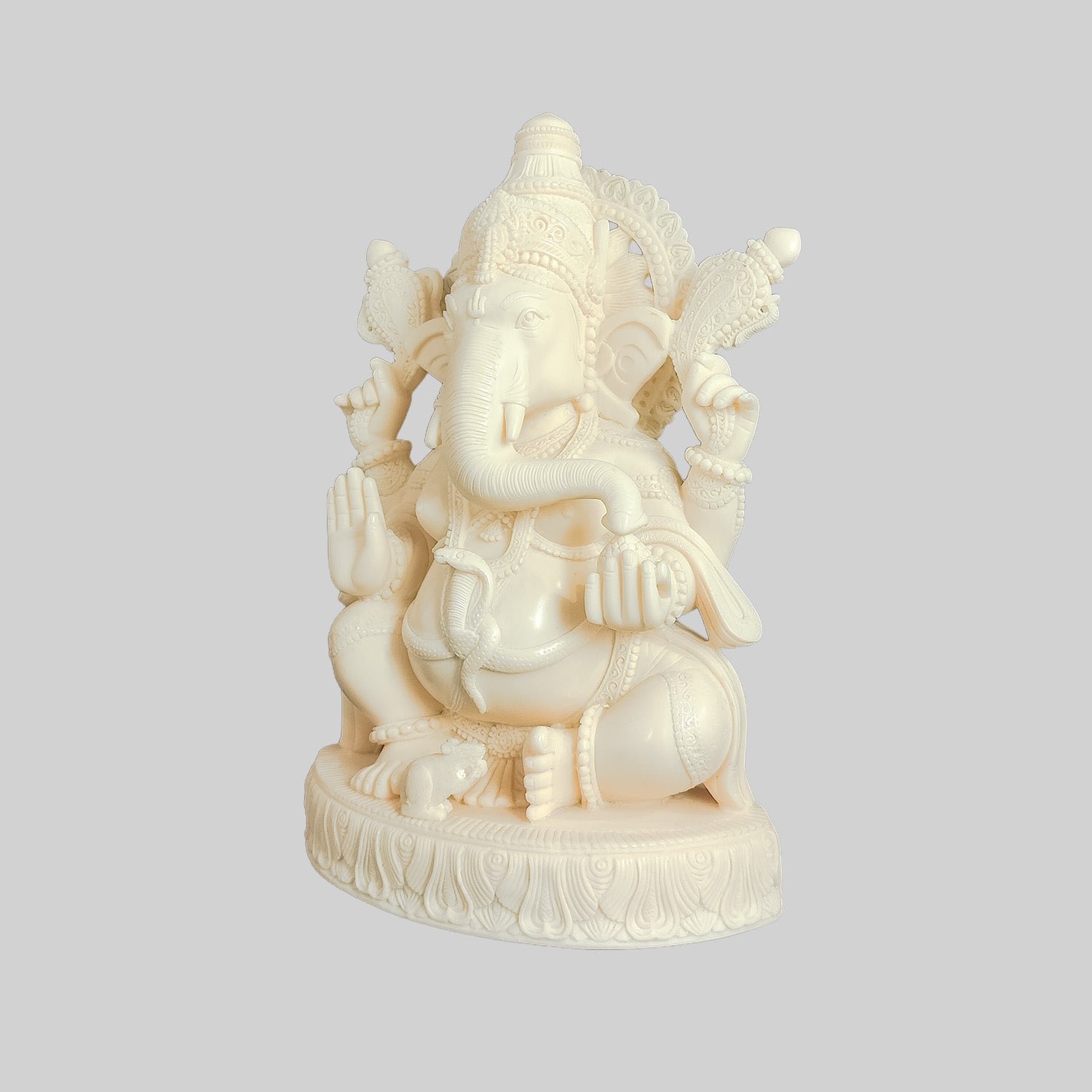 Elegant and finely detailed, this artefact is crafted from marble dust — a blend of marble powder, synthetic resins, and dyes that gives it a smooth white finish. Each piece is first sculpted from a mould, then carefully carved, finished, and hand-painted by skilled artisans with exceptional attention to facial features and embellishments. A timeless creation that reflects grace, craftsmanship, and tradition.