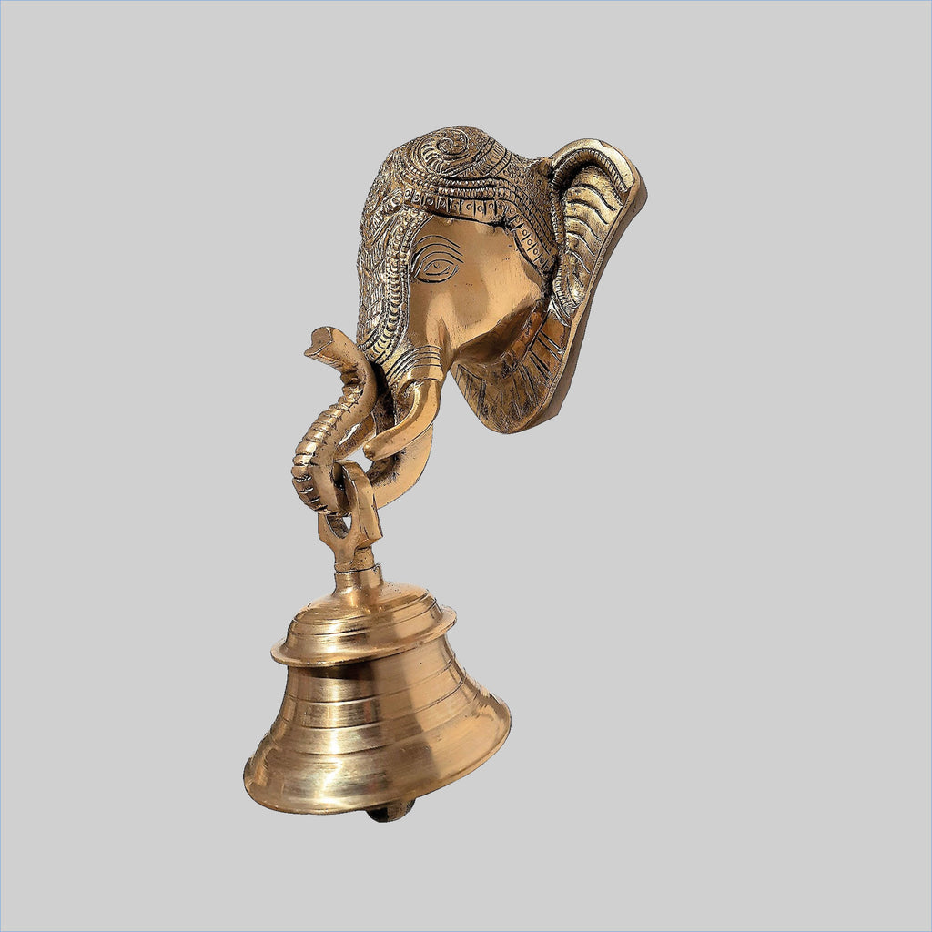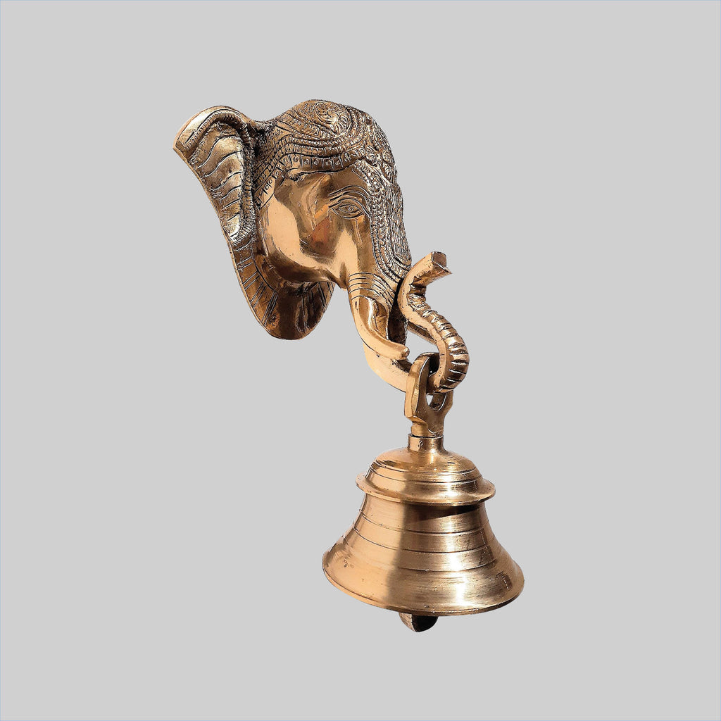 Brass Wall Hanging Elephant Mask with Bell 9 in