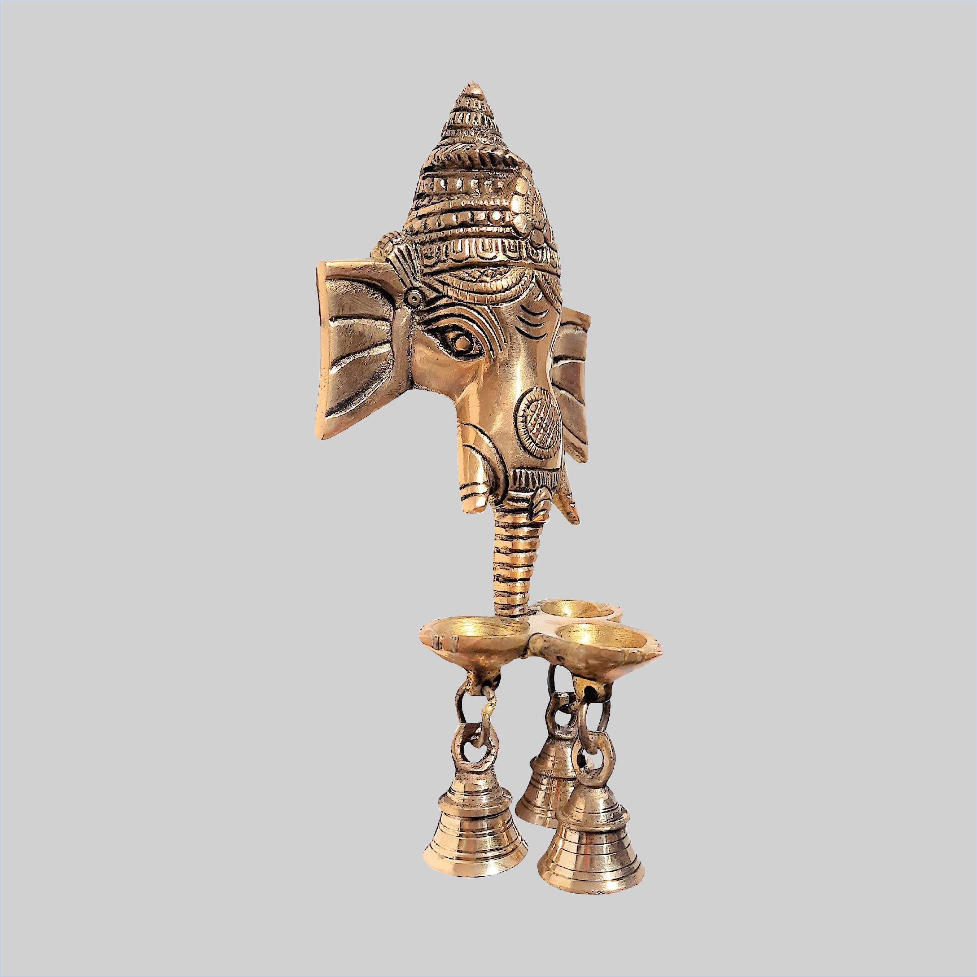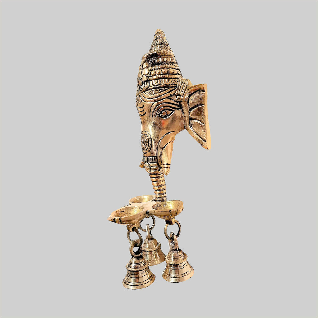 Brass Wall Hanging Ganesha Mask with Deepak 8 in