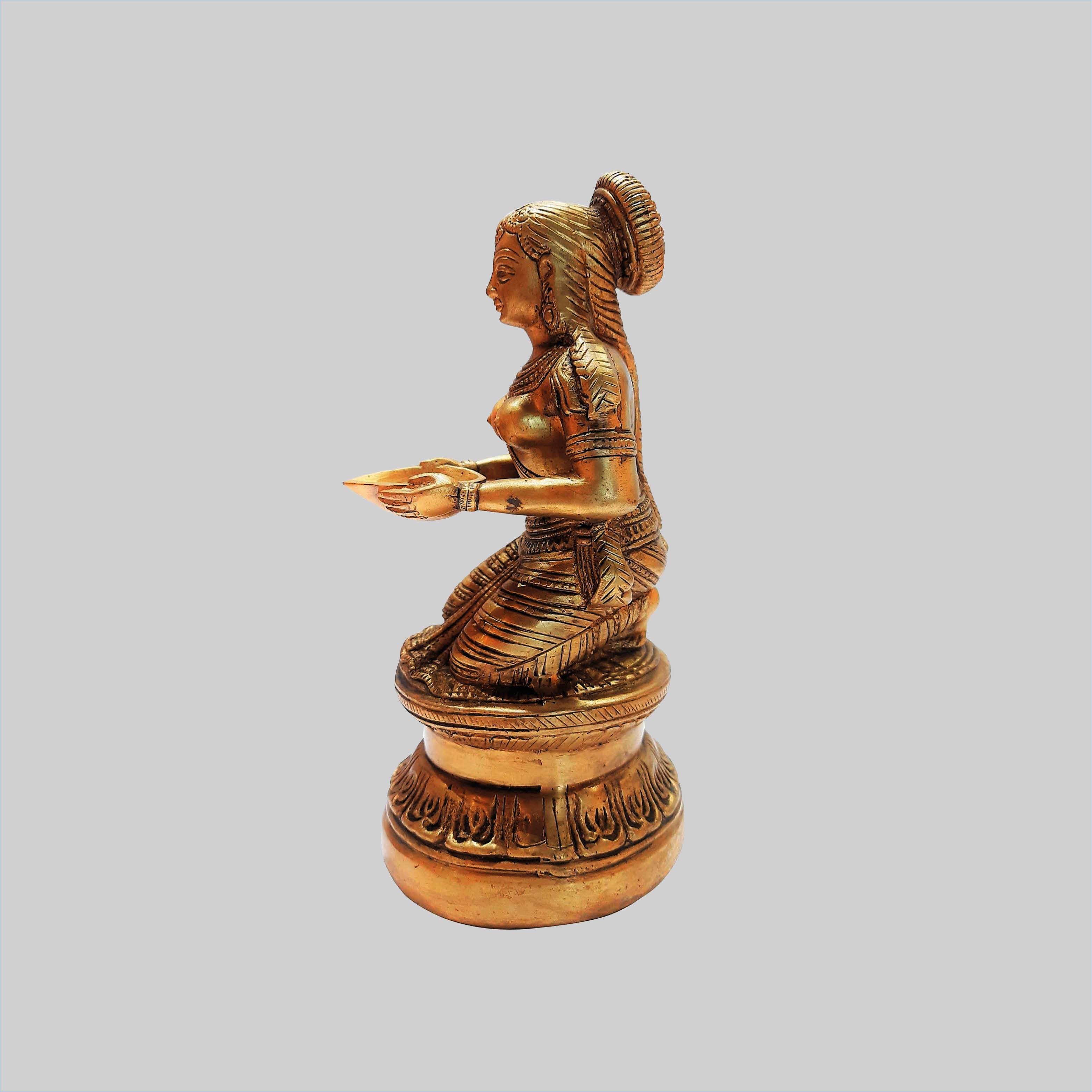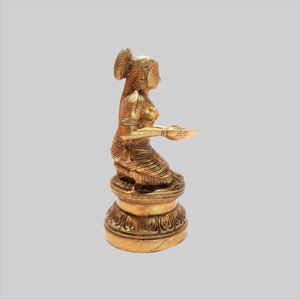 Invite prosperity and positive energy into your home with our beautifully handcrafted Brass Deep Laxmi. Featuring Goddess Laxmi holding a traditional deepak, this piece symbolizes wealth, light, and divine blessings. Made from pure brass with intricate detailing, it's perfect for Diwali, Lakshmi Pooja, or as a sacred addition to your spiritual décor. A timeless blend of devotion and artistry, ideal for gifting or enhancing your home temple.