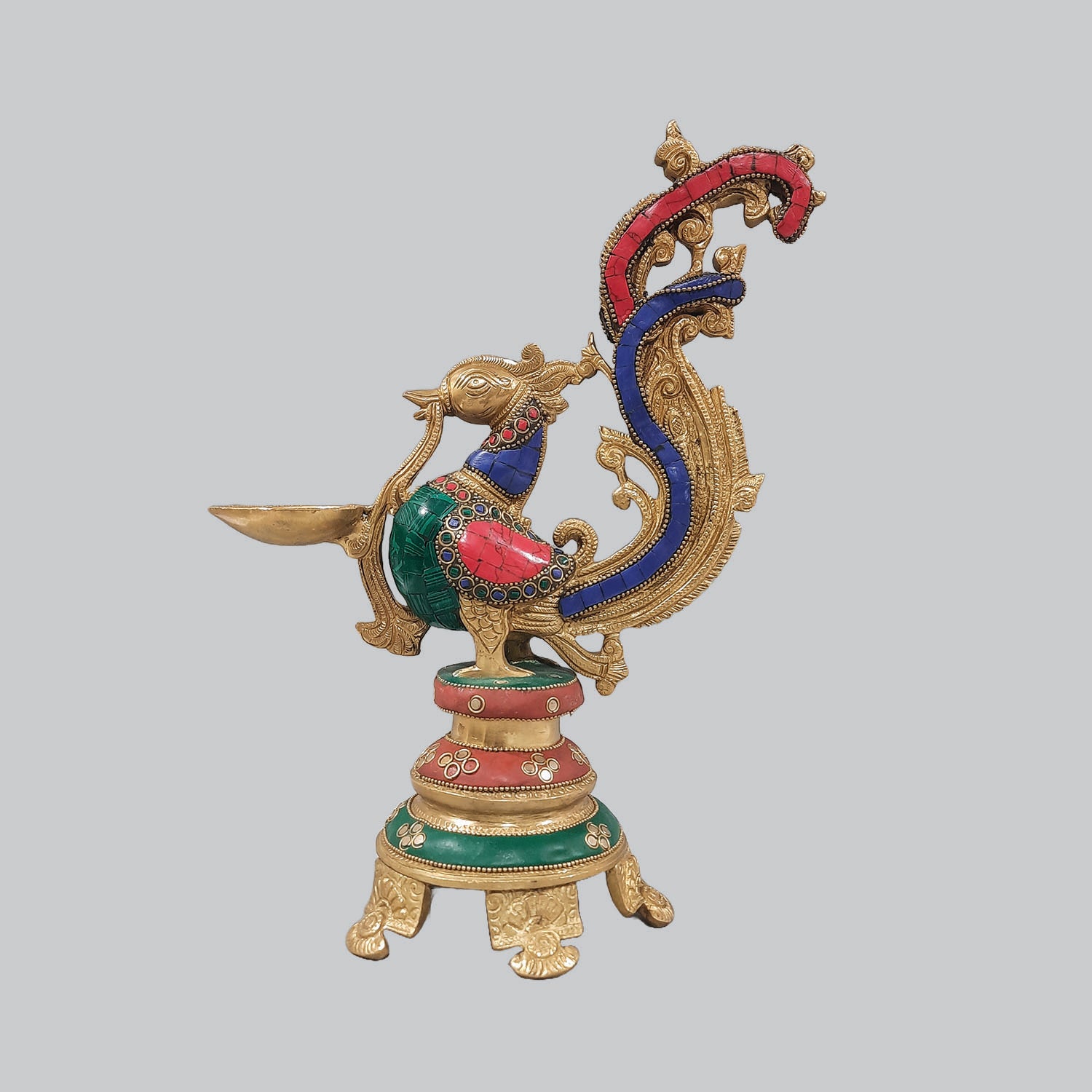 Brass Annam Deepak with Stonework 13 in