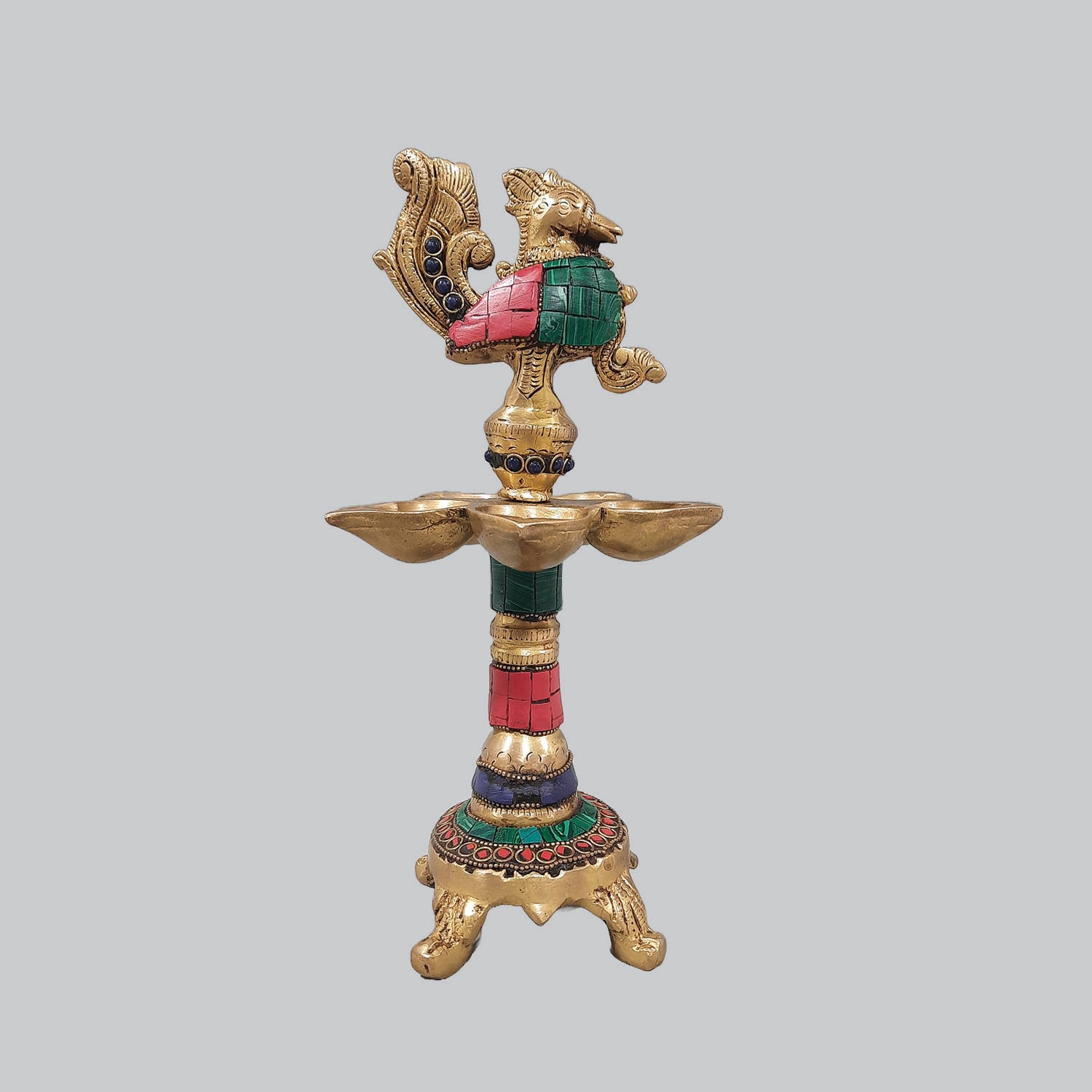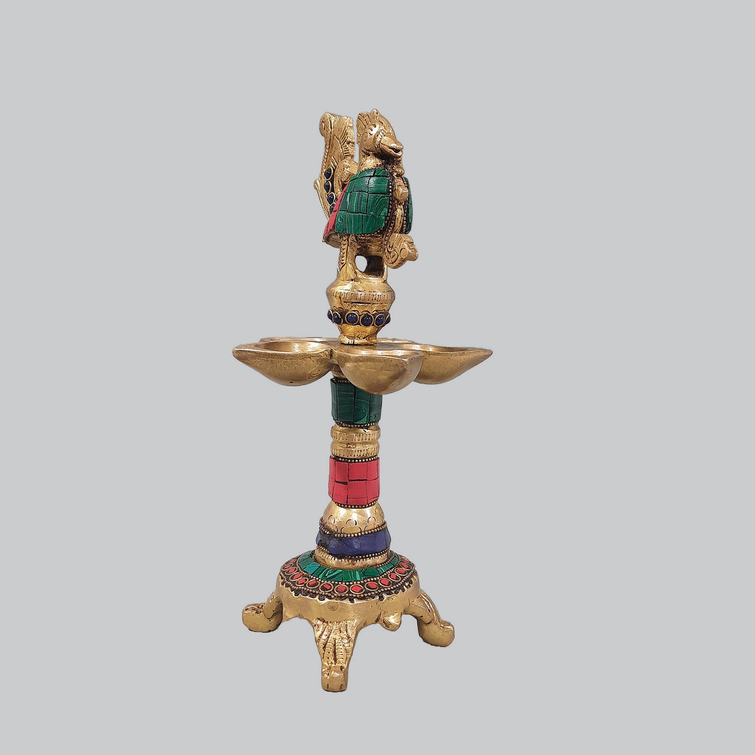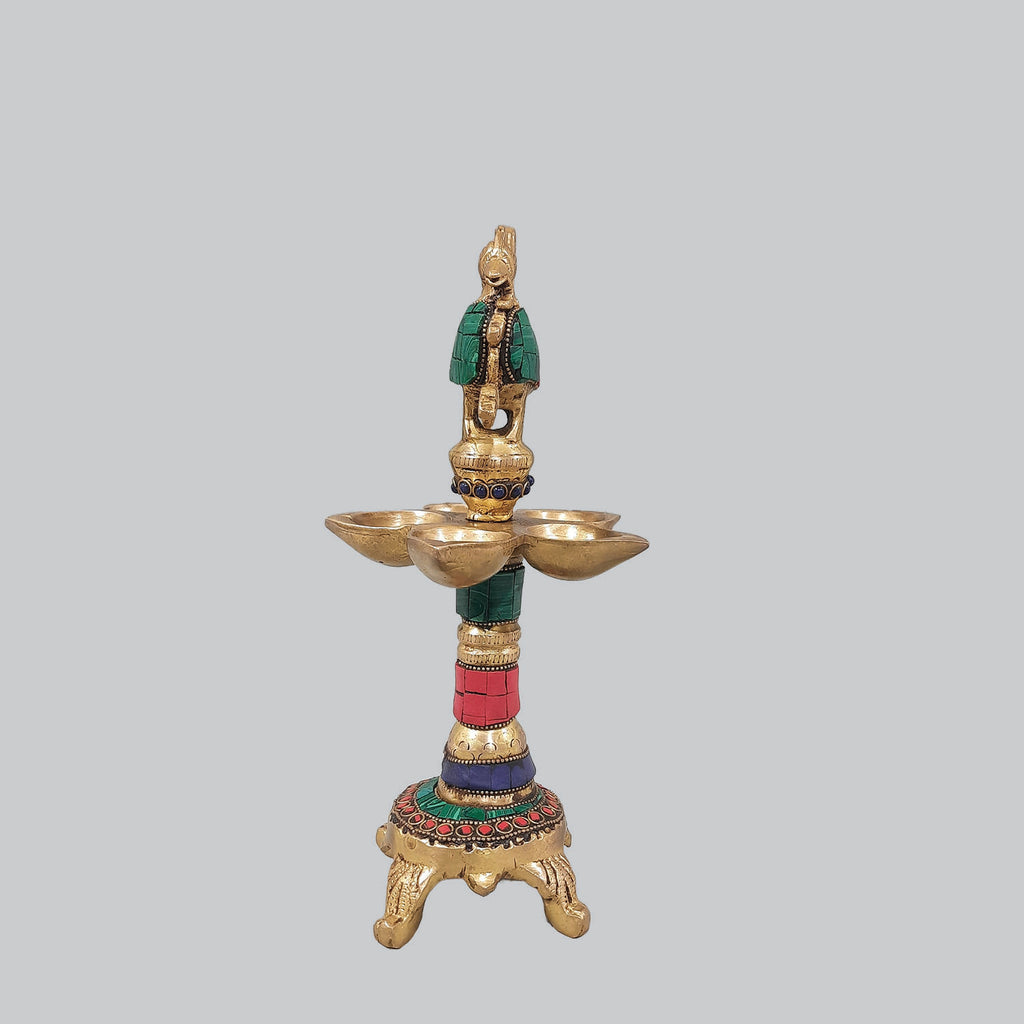 Brass Lamp Peacock Ring Stonework 8 in