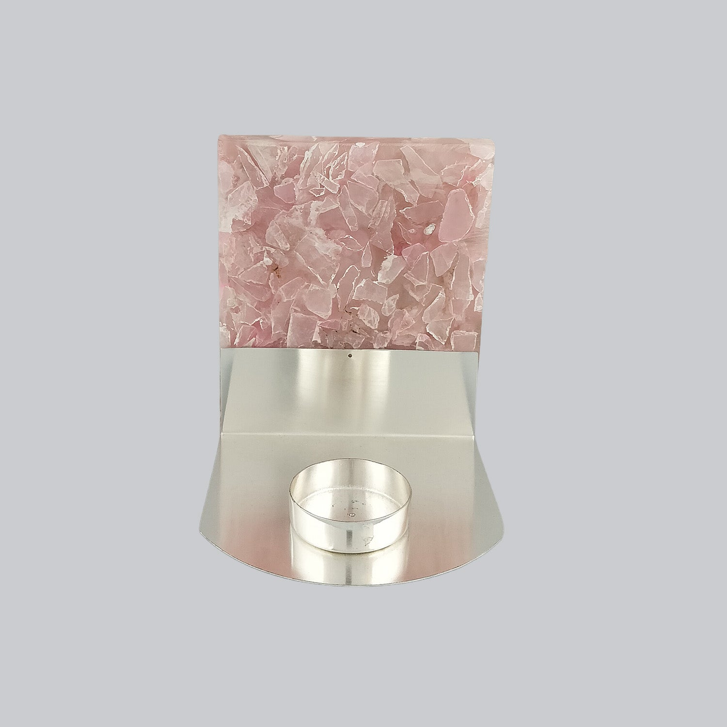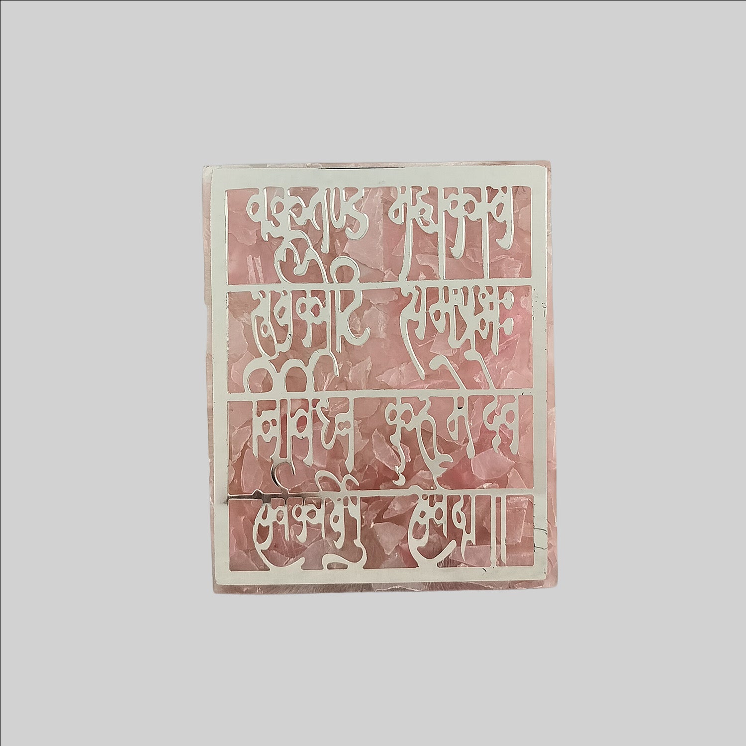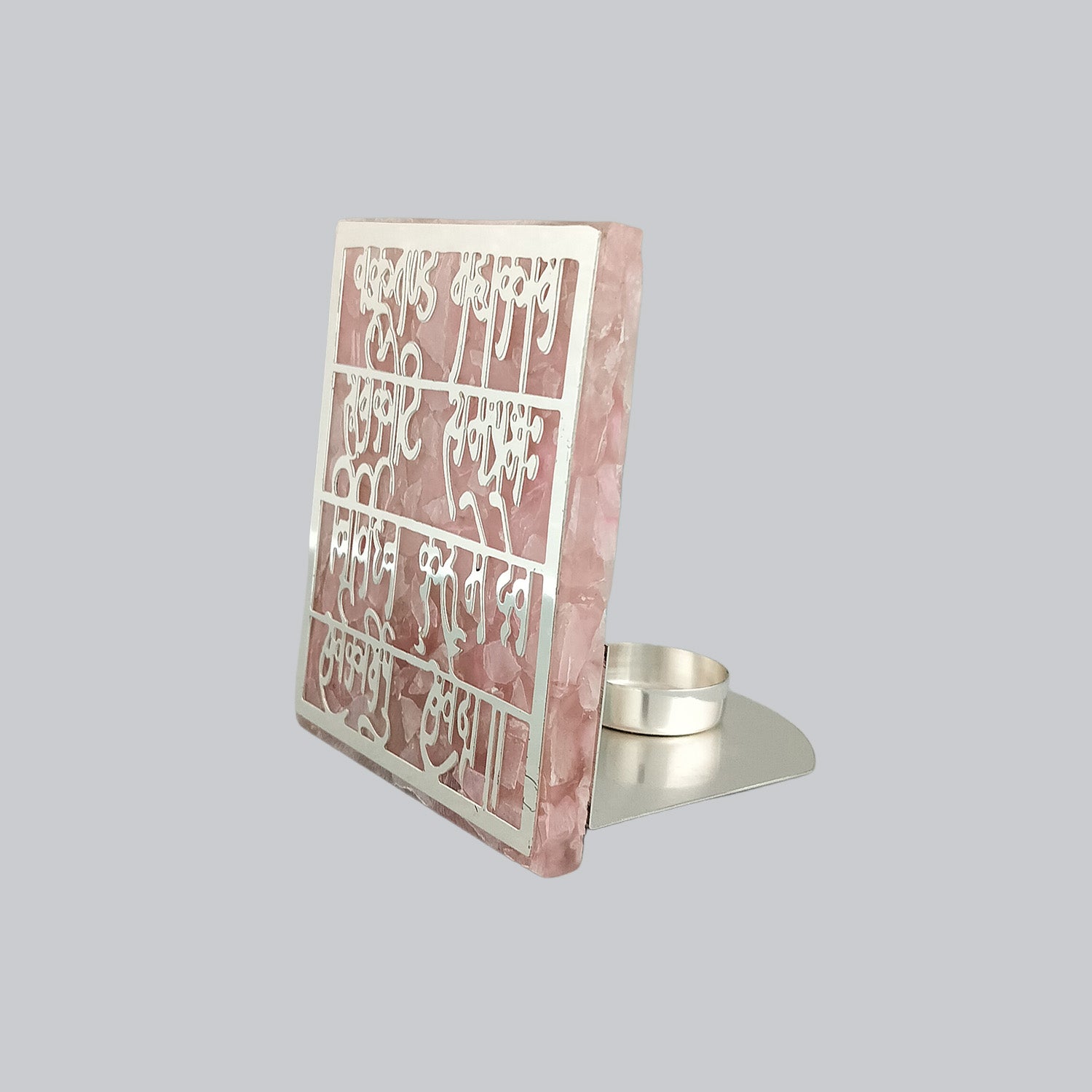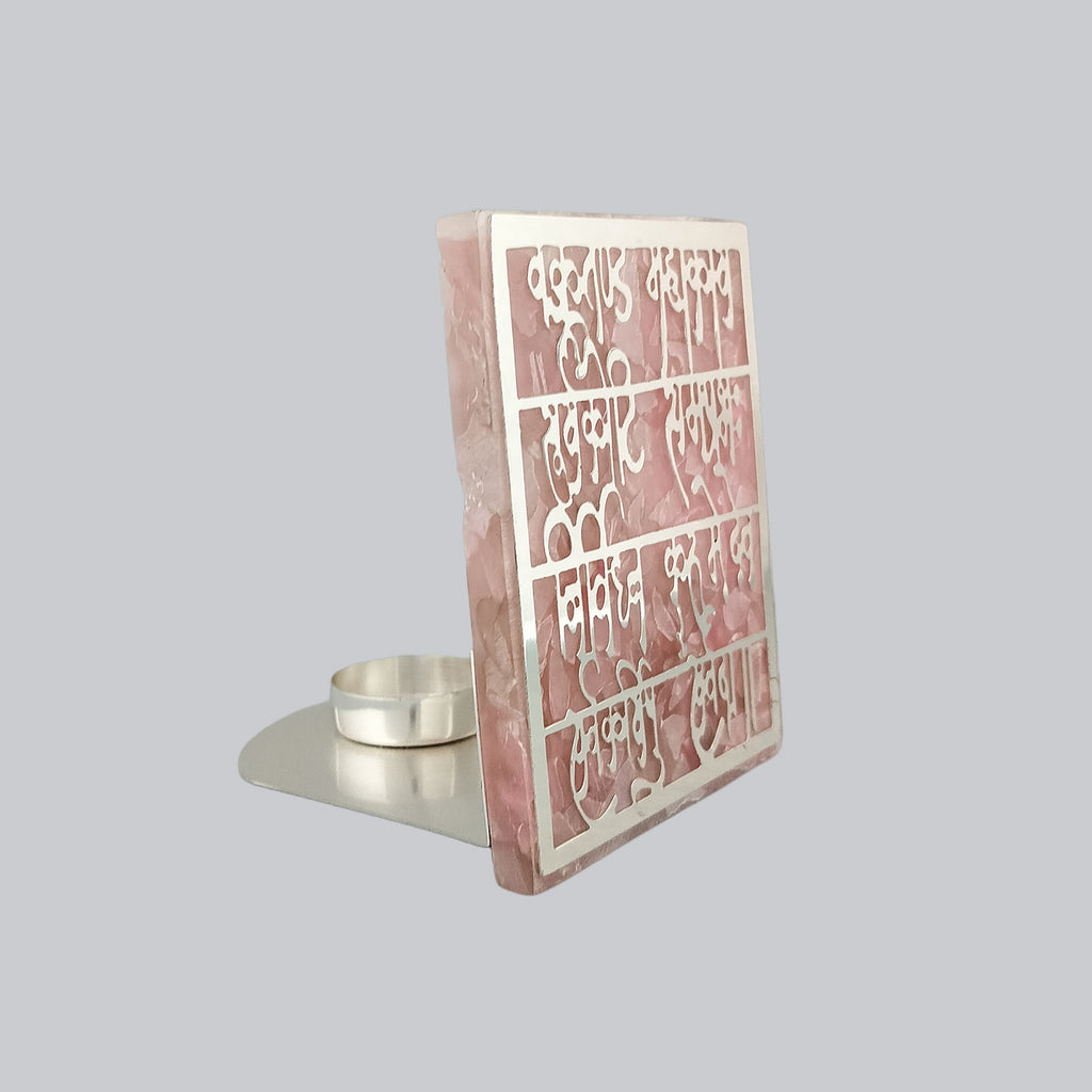 Silver Plated Ganesh Mantra T Light Holder on Rose Quartz Base 5 in x 4.5 in