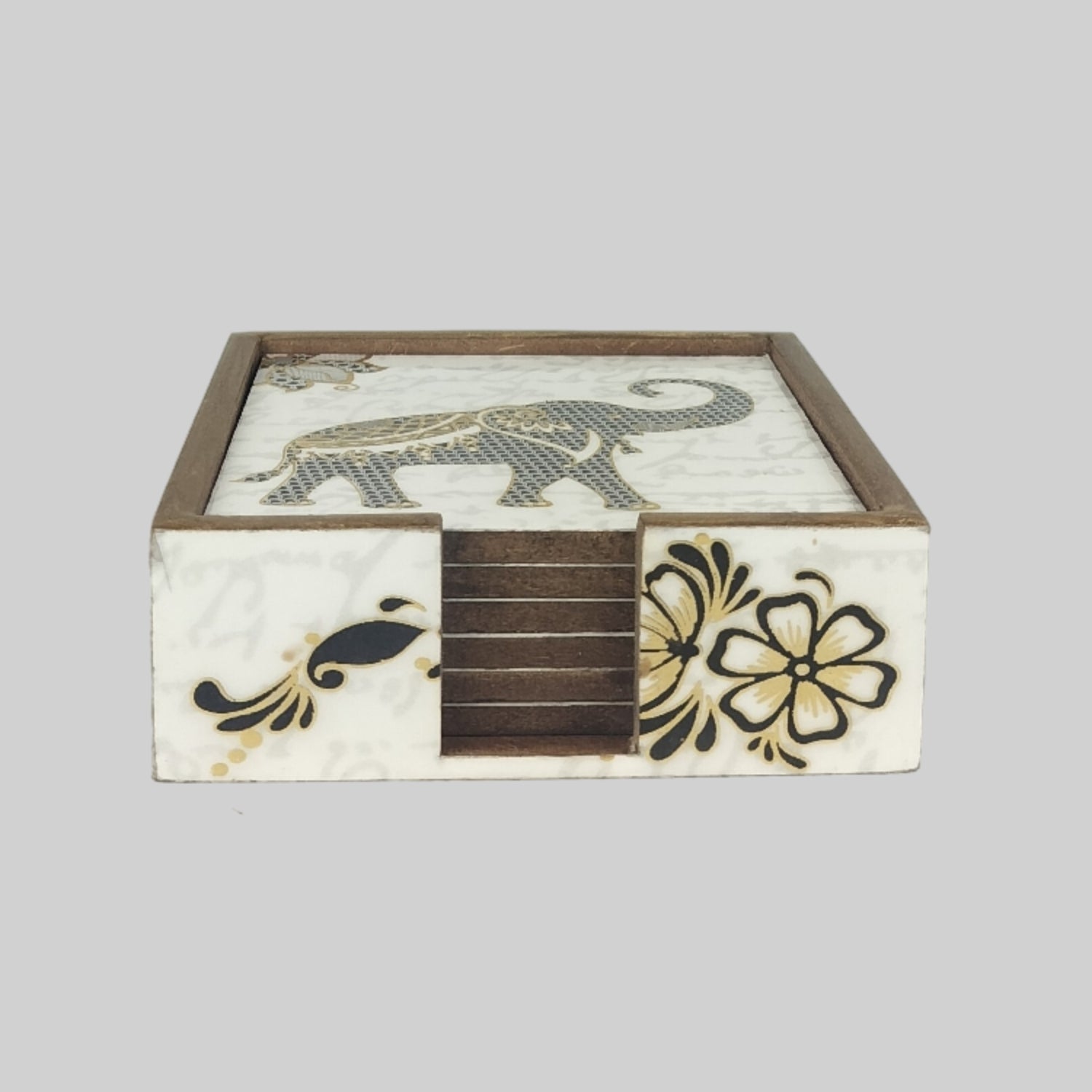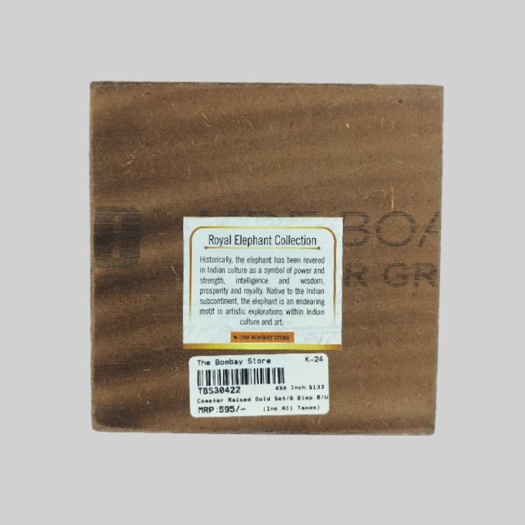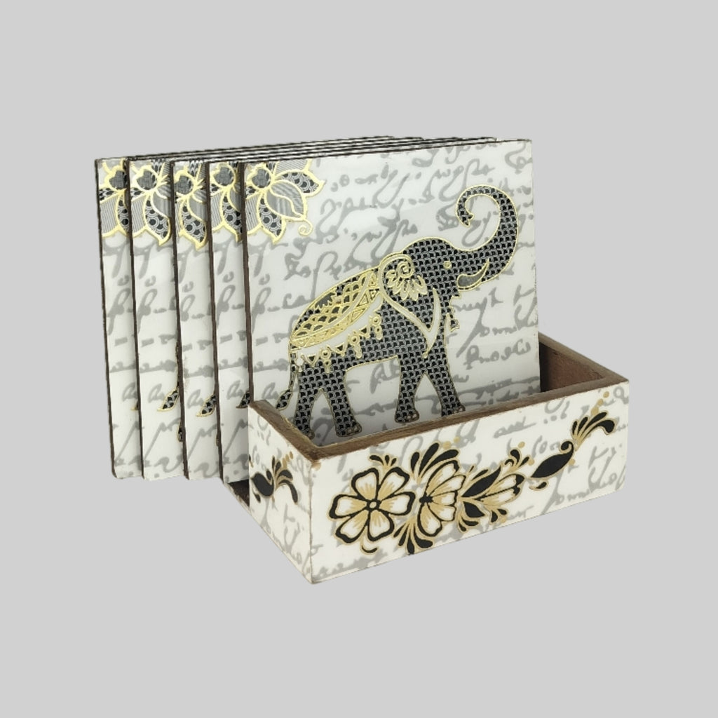 Royal Elephant Gold Foiled Square Coasters with Holder (Set of 6)