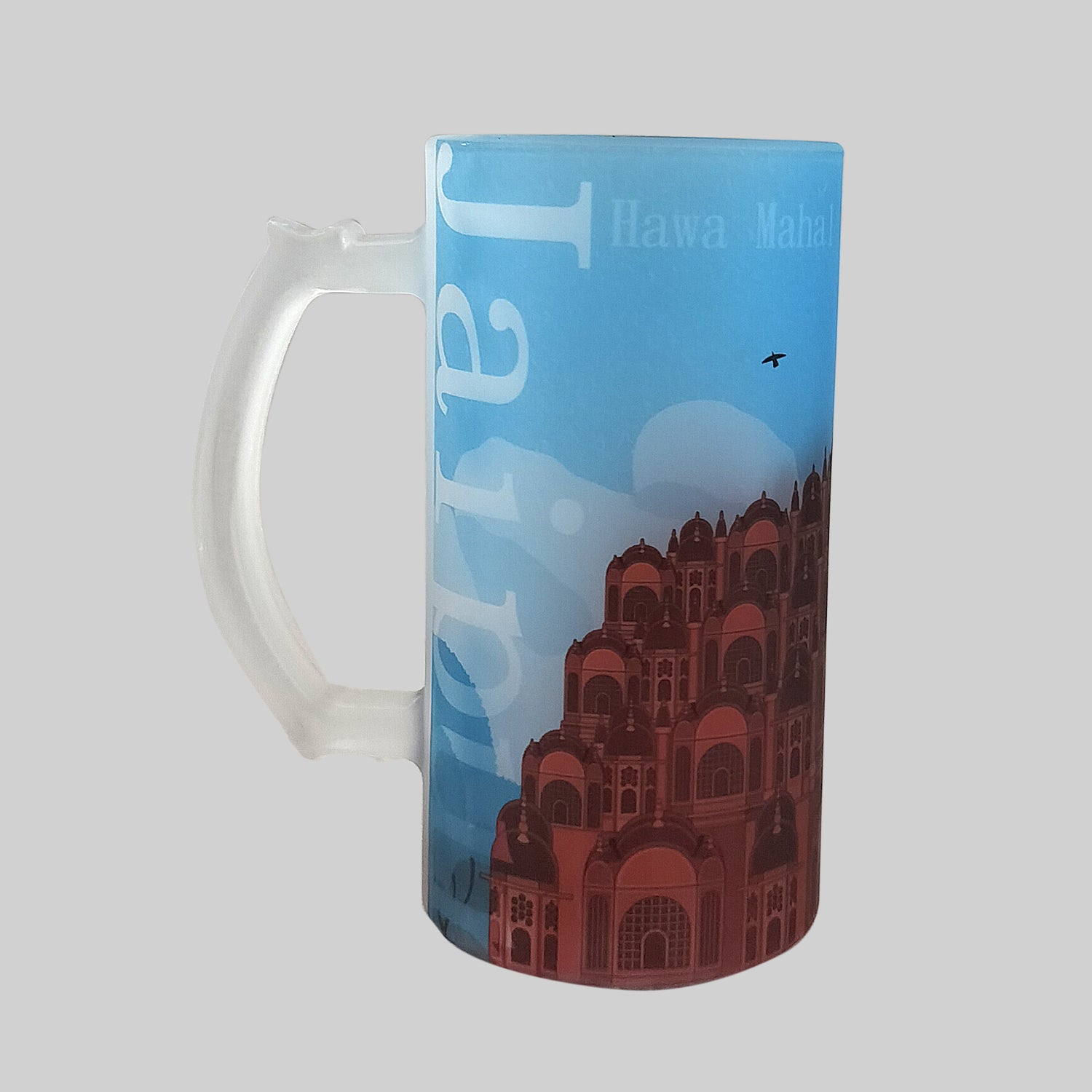 Add a touch of elegance to your drinking experience with our frosted glass beer mug, featuring unique India-inspired designs. Crafted from high-quality glass, this mug's smooth frosted finish brings sophistication to any gathering. Perfect for enjoying your favourite brews in style!