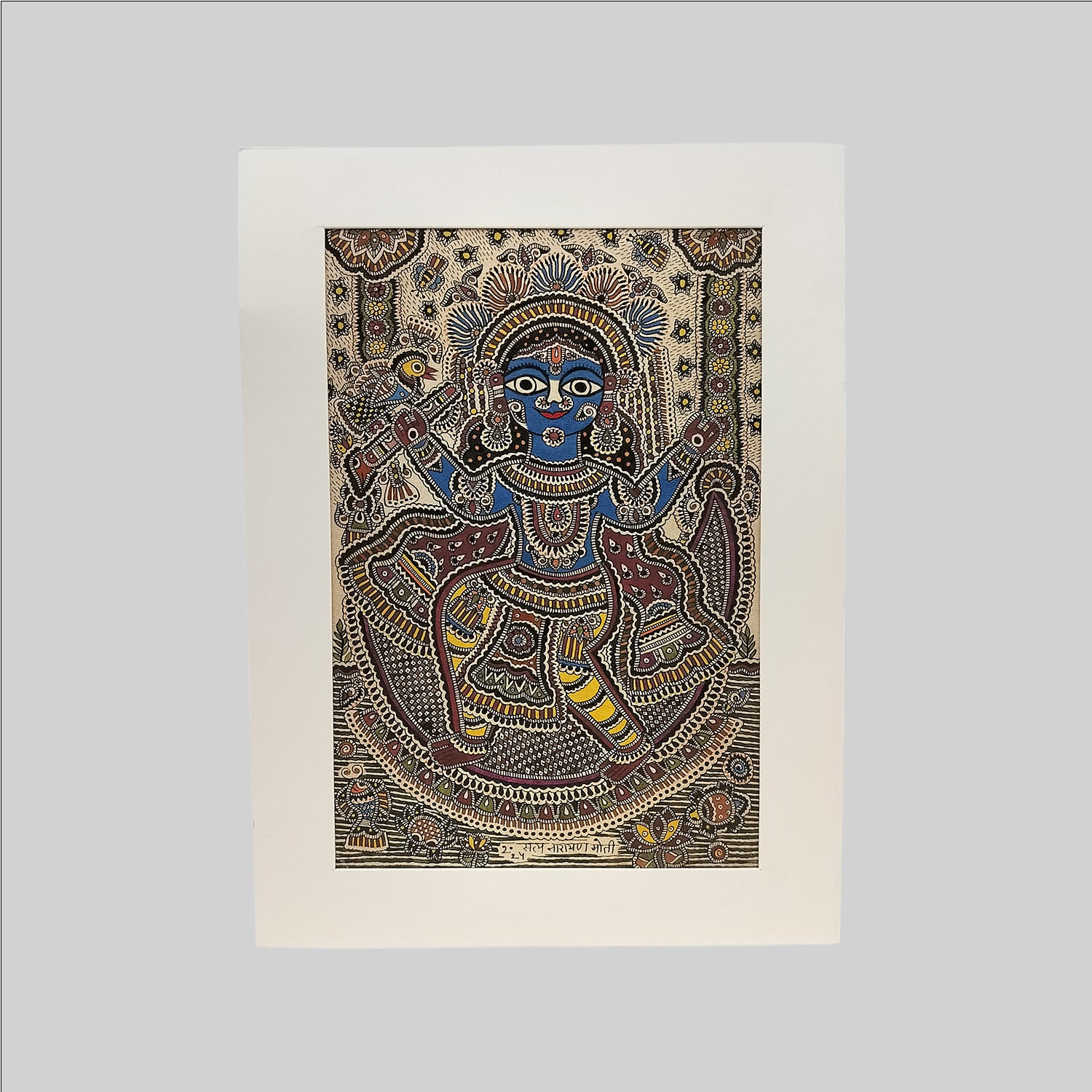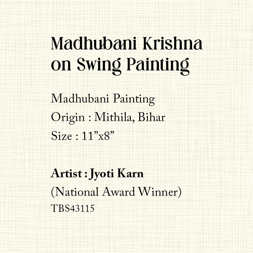 Madhubani Krishna on Swing Painting (Mount) - 11 in x 8 in