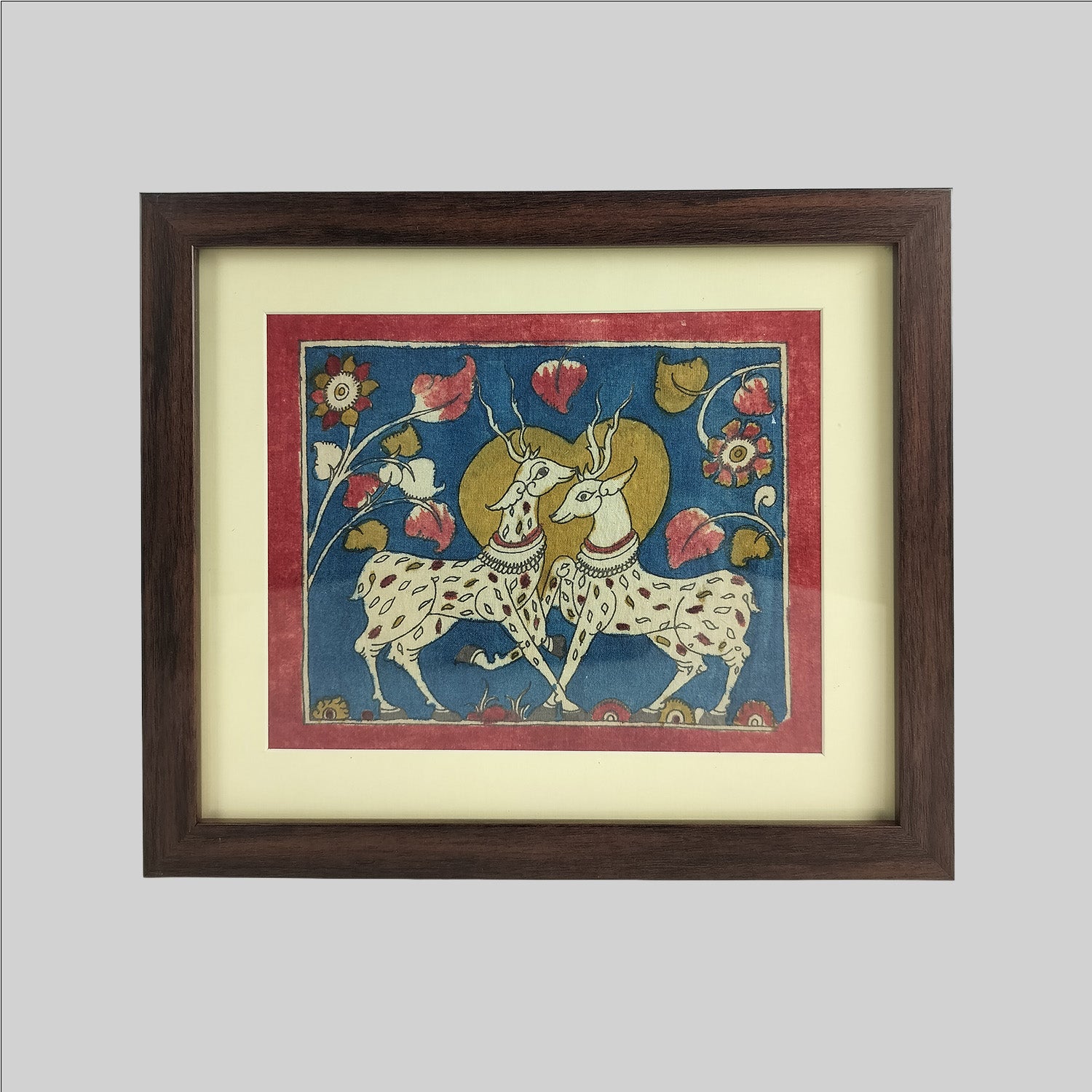 Kalamkari Deer Painting (Frame) - 9 in x 10 in
