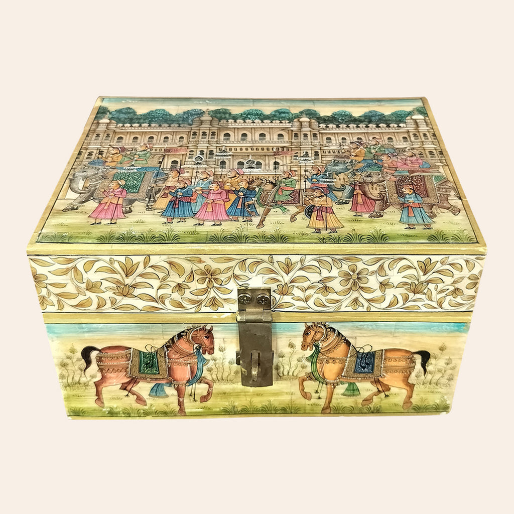 Camel Bone Box Miniature Procession Painting 7 x 8 in