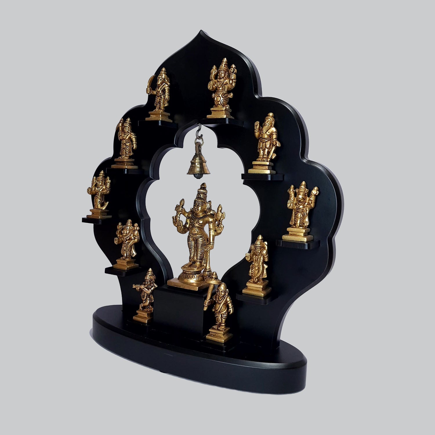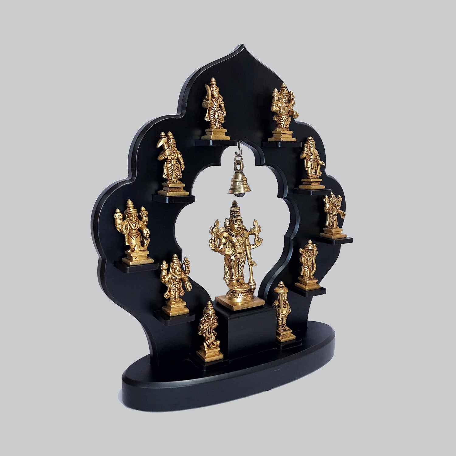 Brass Vishnu Dashavatar Set with Wood Frame 15 in