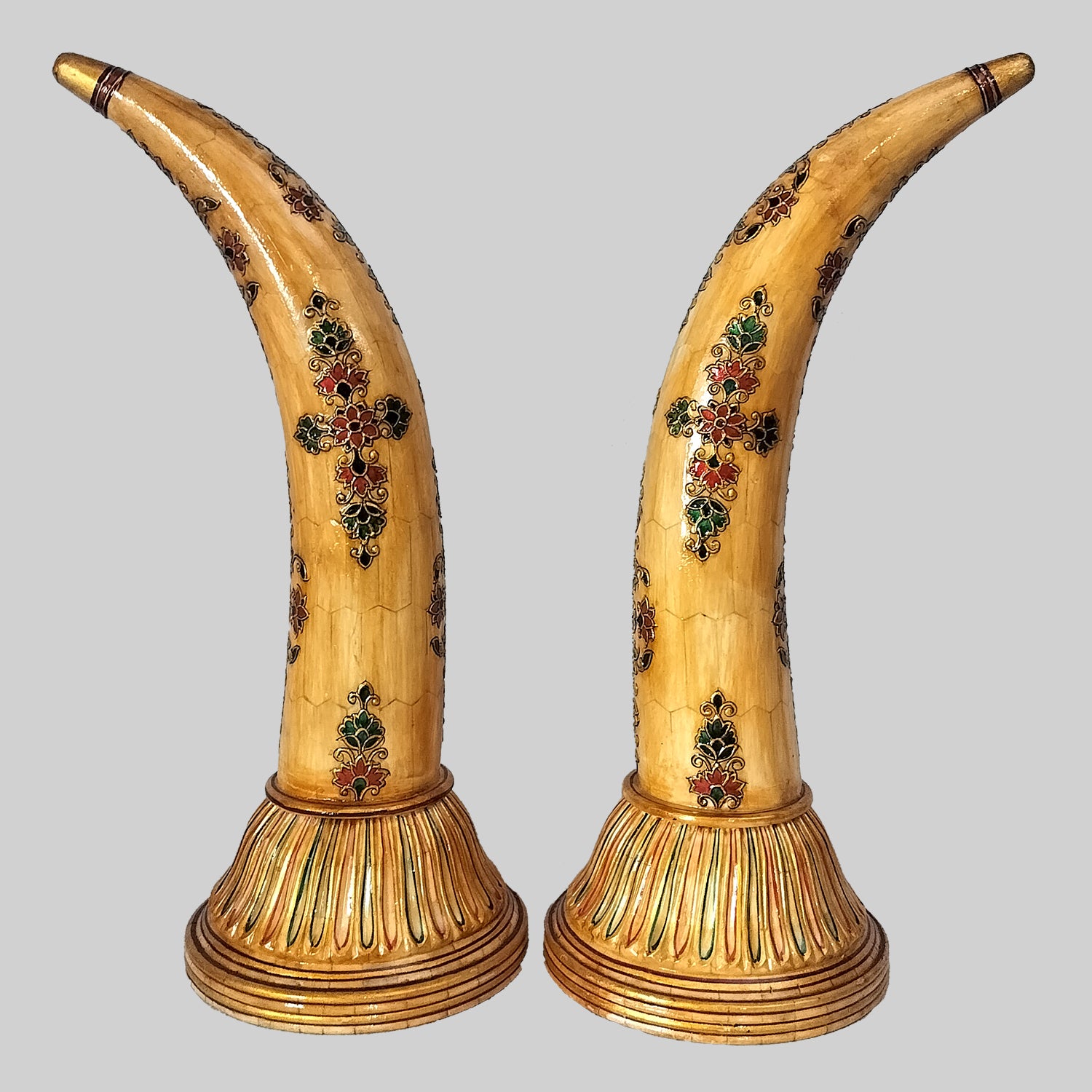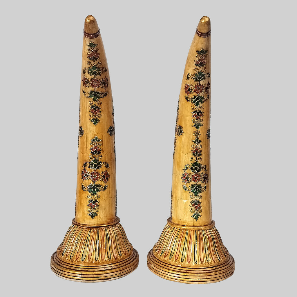 Camel Bone Tusk with Meenakari Work 15 in (Set of 2)