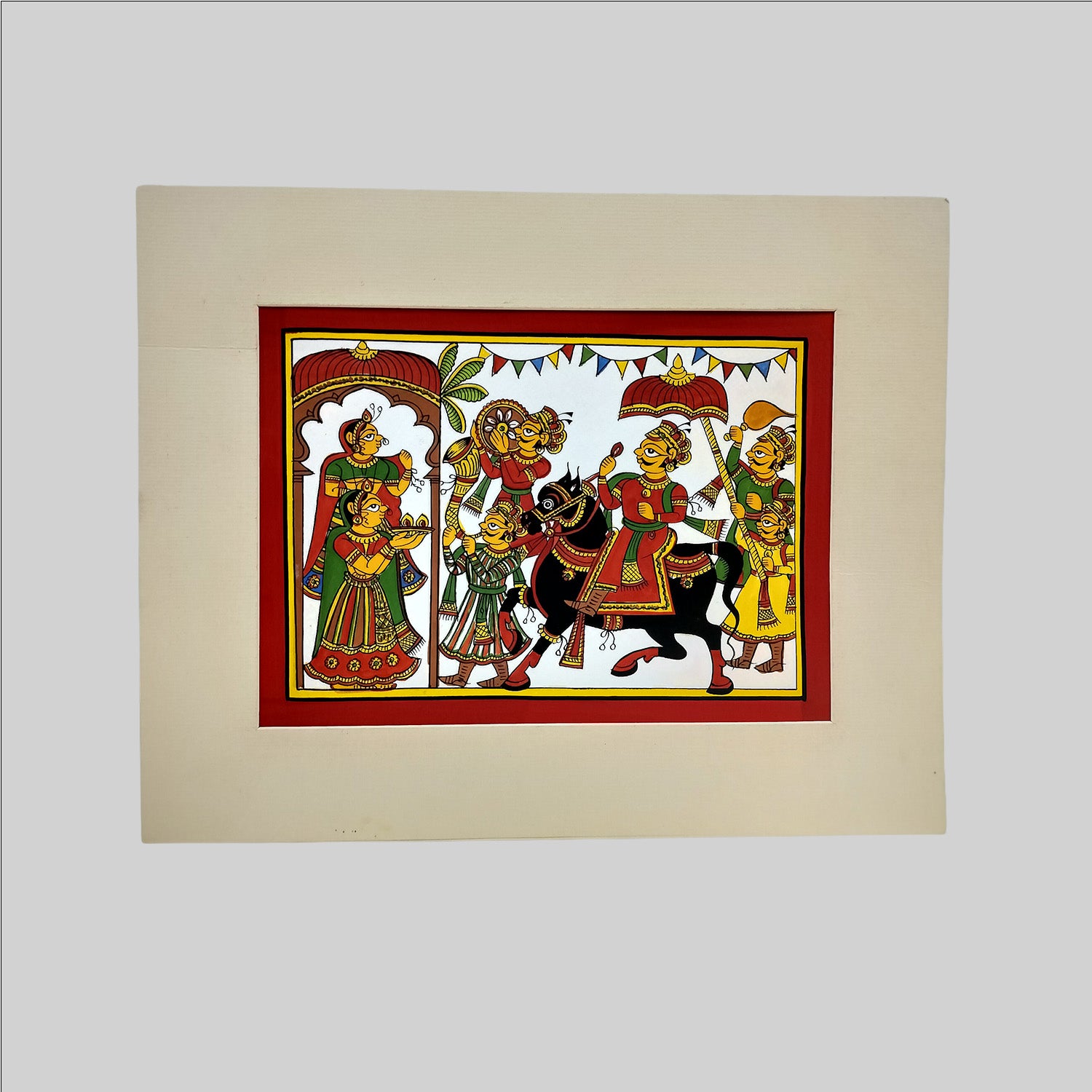 Phad Welcoming Raja Painting (Mount) - 11 in x 14.5 in