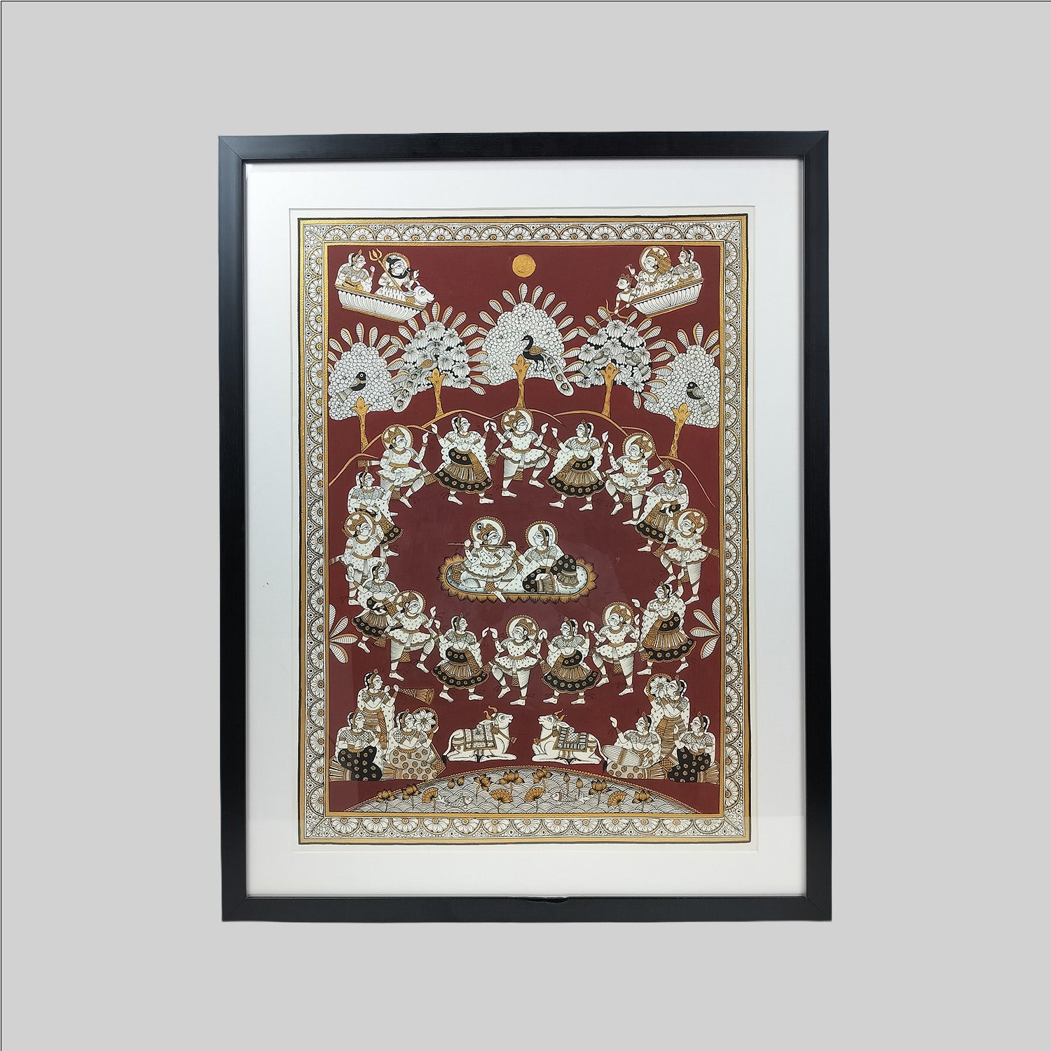 Phad Krishna Ras Leela Painting (Frame) - 25 in x 34 in