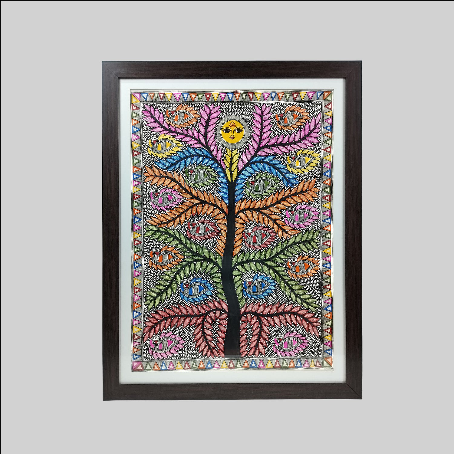 Madhubani Tree of Life Painting (Frame) - 30.2 in x 22.2 in