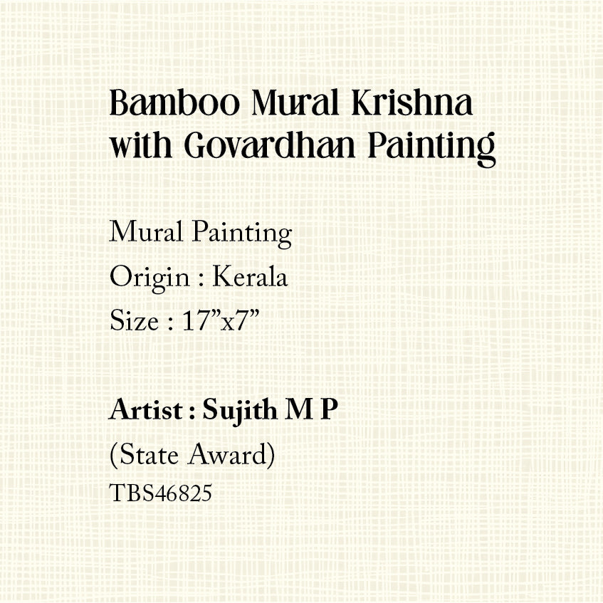 Bamboo Mural Krishna with Govardhan Painting - 17 in x 7 in