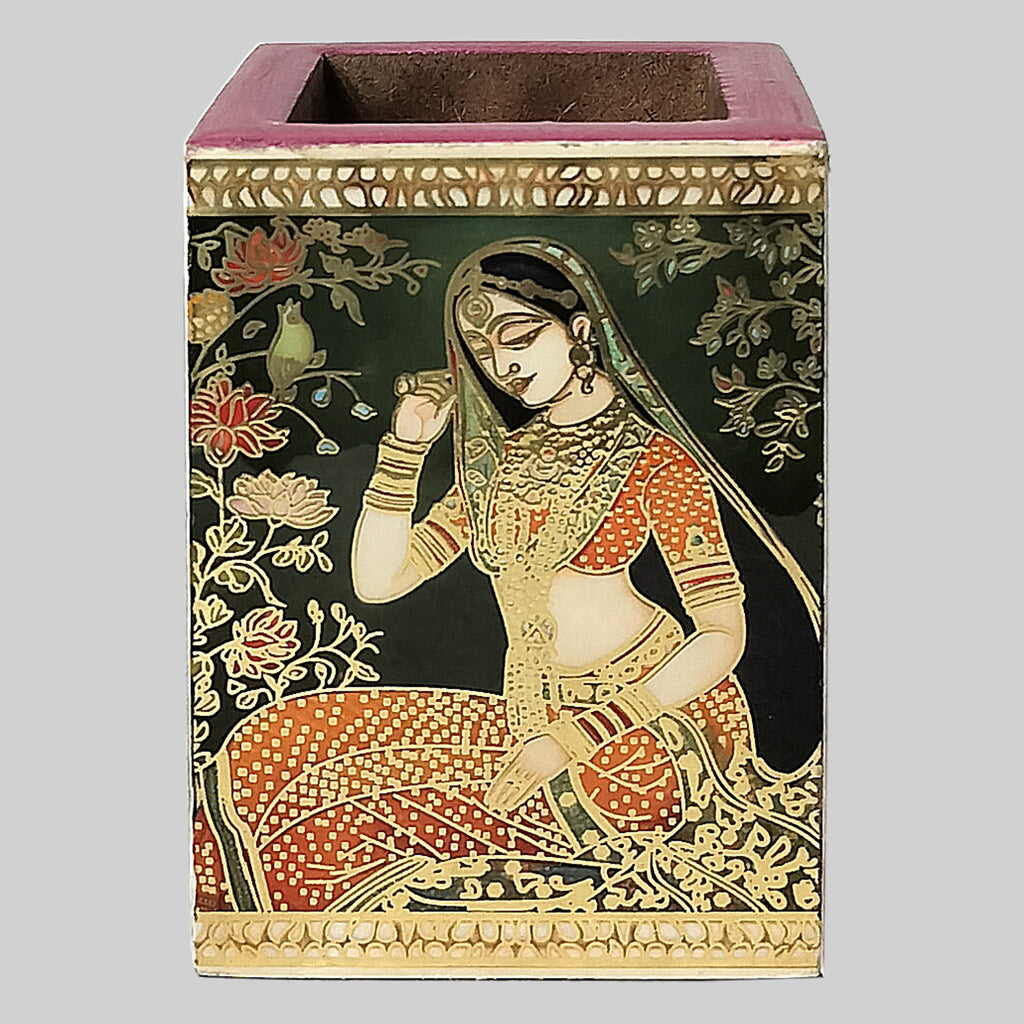 Add a touch of artistry to your workspace with this elegant pen stand, adorned with a vibrant enamel coating. Blending functionality with elegance, it keeps your desk organized while serving as a stylish décor accent — perfect for home or office use.