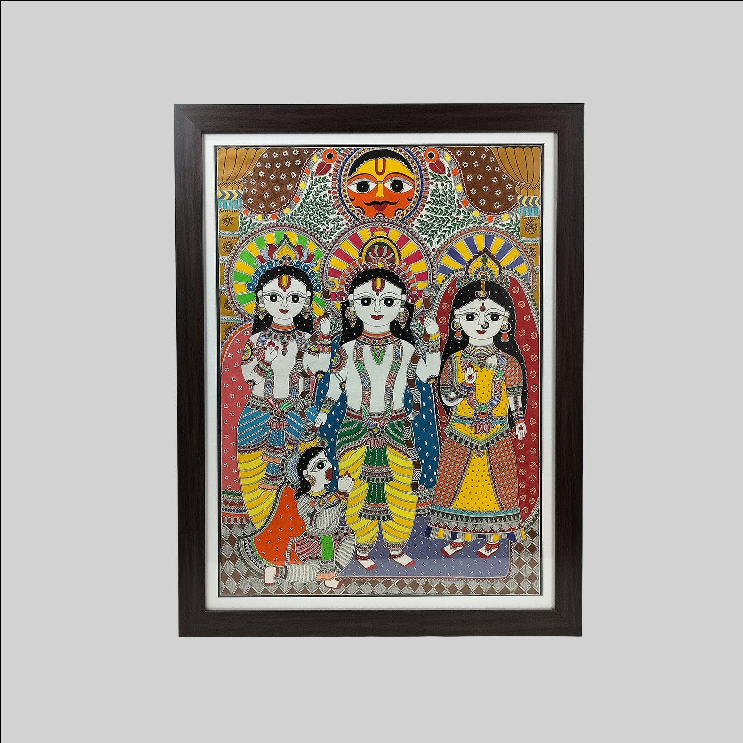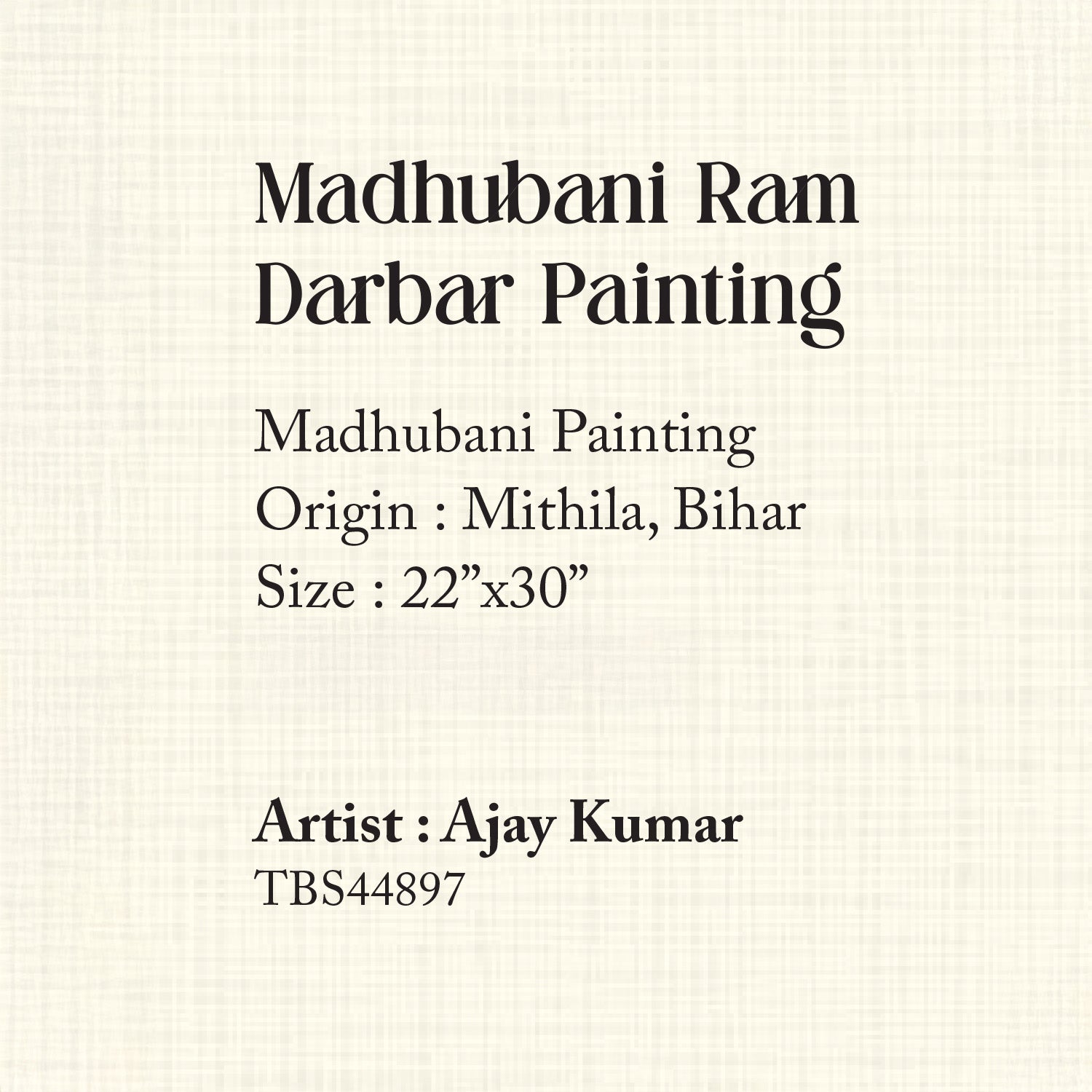Madhubani Ram Darbar Painting (Frame) - 22 in x 30 in