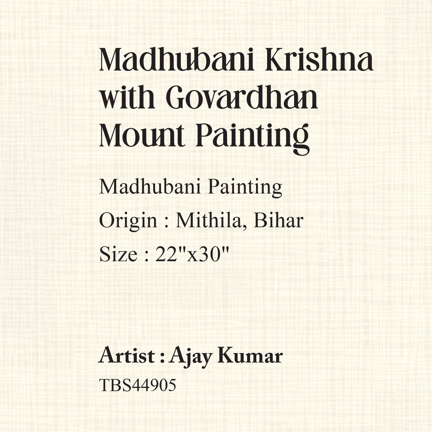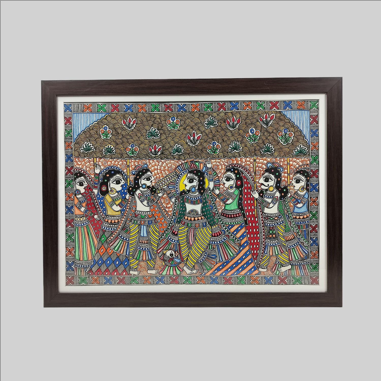 Madhubani Krishna Painting (Frame) - 22 in x 30 in