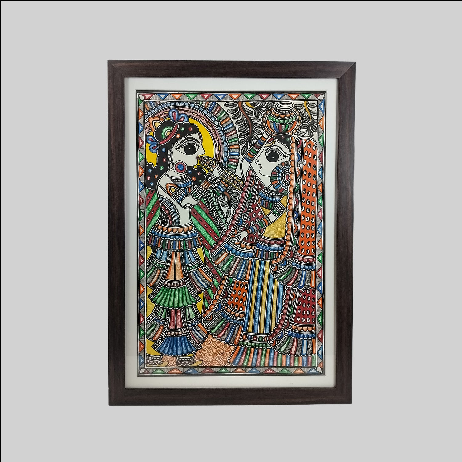 Madhubani Radha Krishna Painting (Frame) - 15 in x 22 in