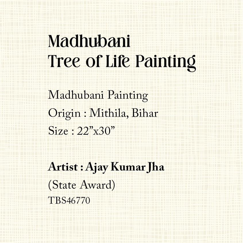 Madhubani Tree of Life Painting (Frame) - 22 in x 30 in