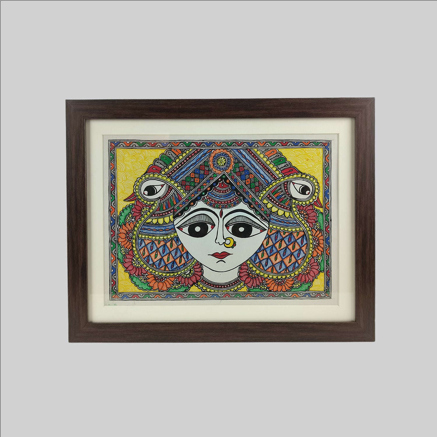 Madhubani Durga Painting (Frame) - 11 in x 15 in