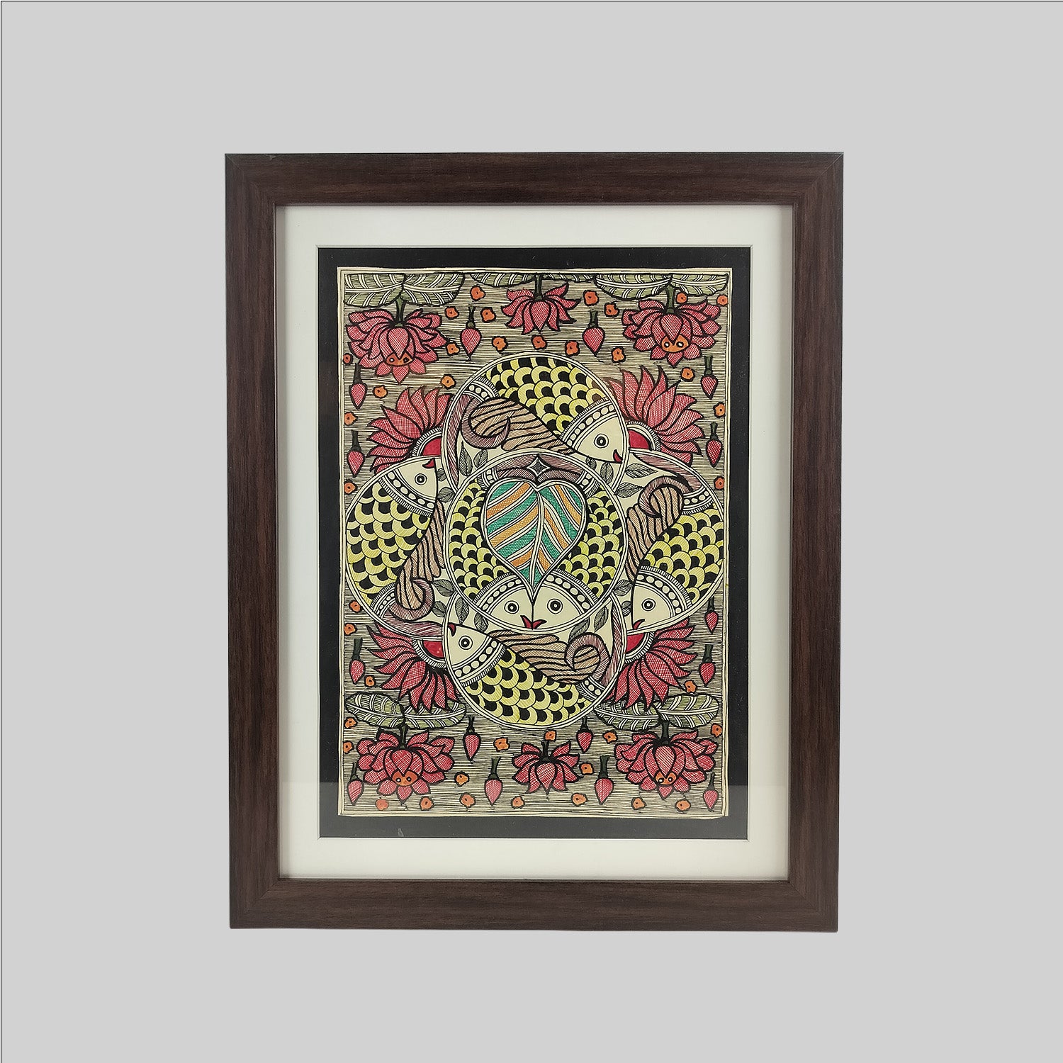 Madhubani Fish Ras Painting (Frame) - 11 in x 15 in