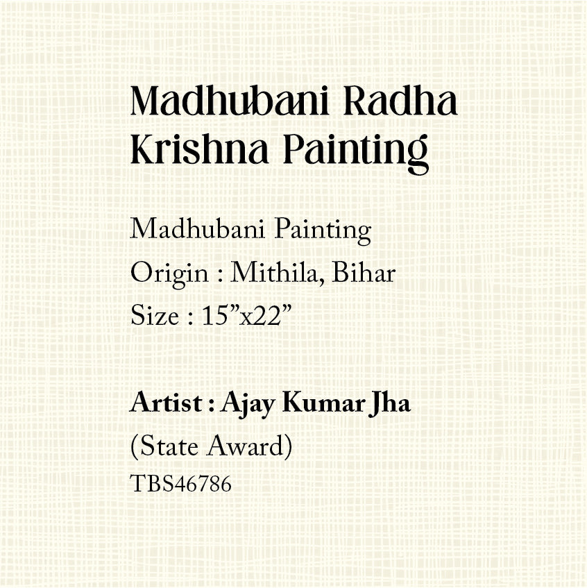 Madhubani Radha Krishna Painting (Frame) - 15 in x 22 in