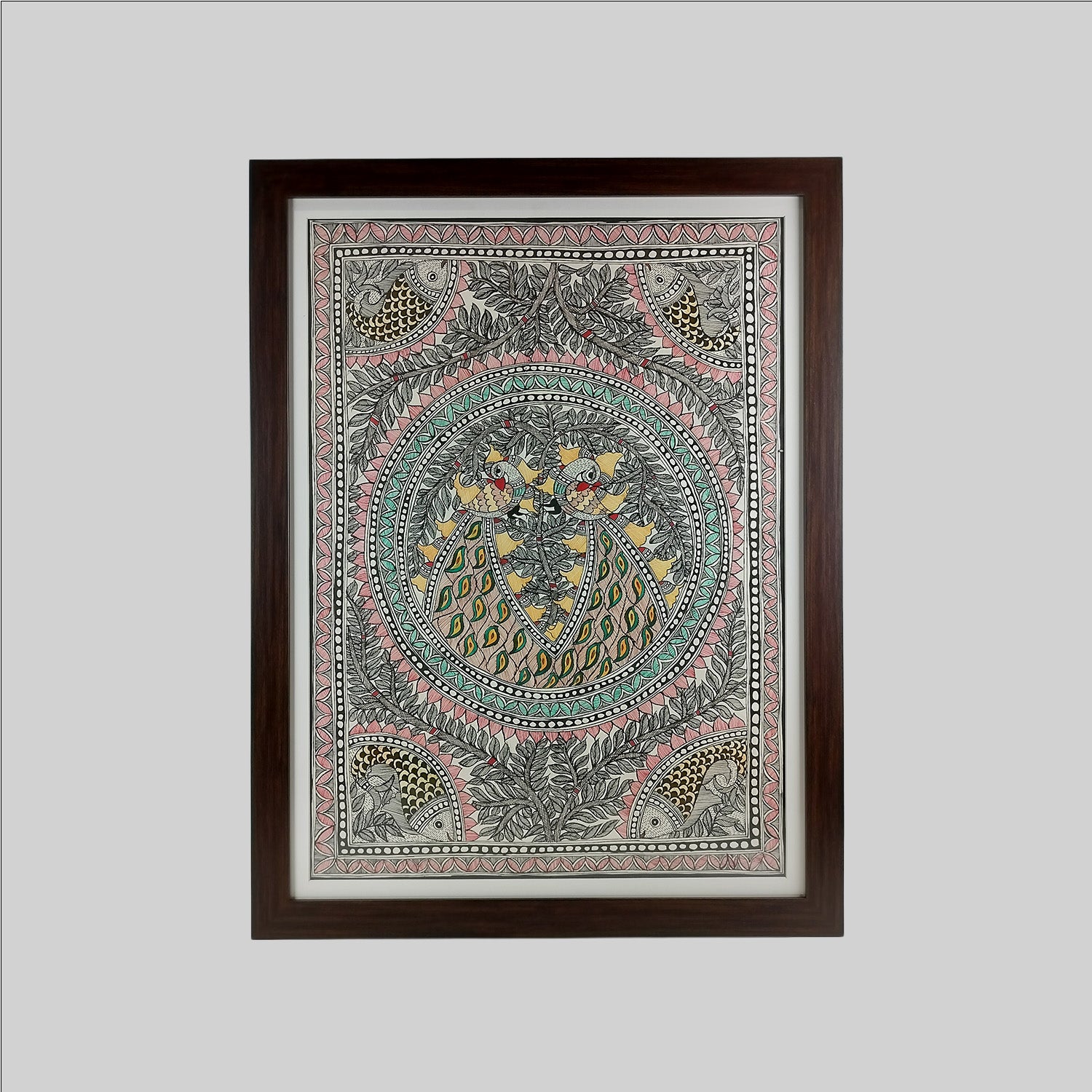 Madhubani Peacock Painting (Frame) - 22 in x 30 in