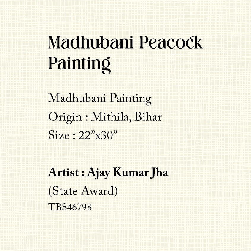 Madhubani Peacock Painting (Frame) - 22 in x 30 in