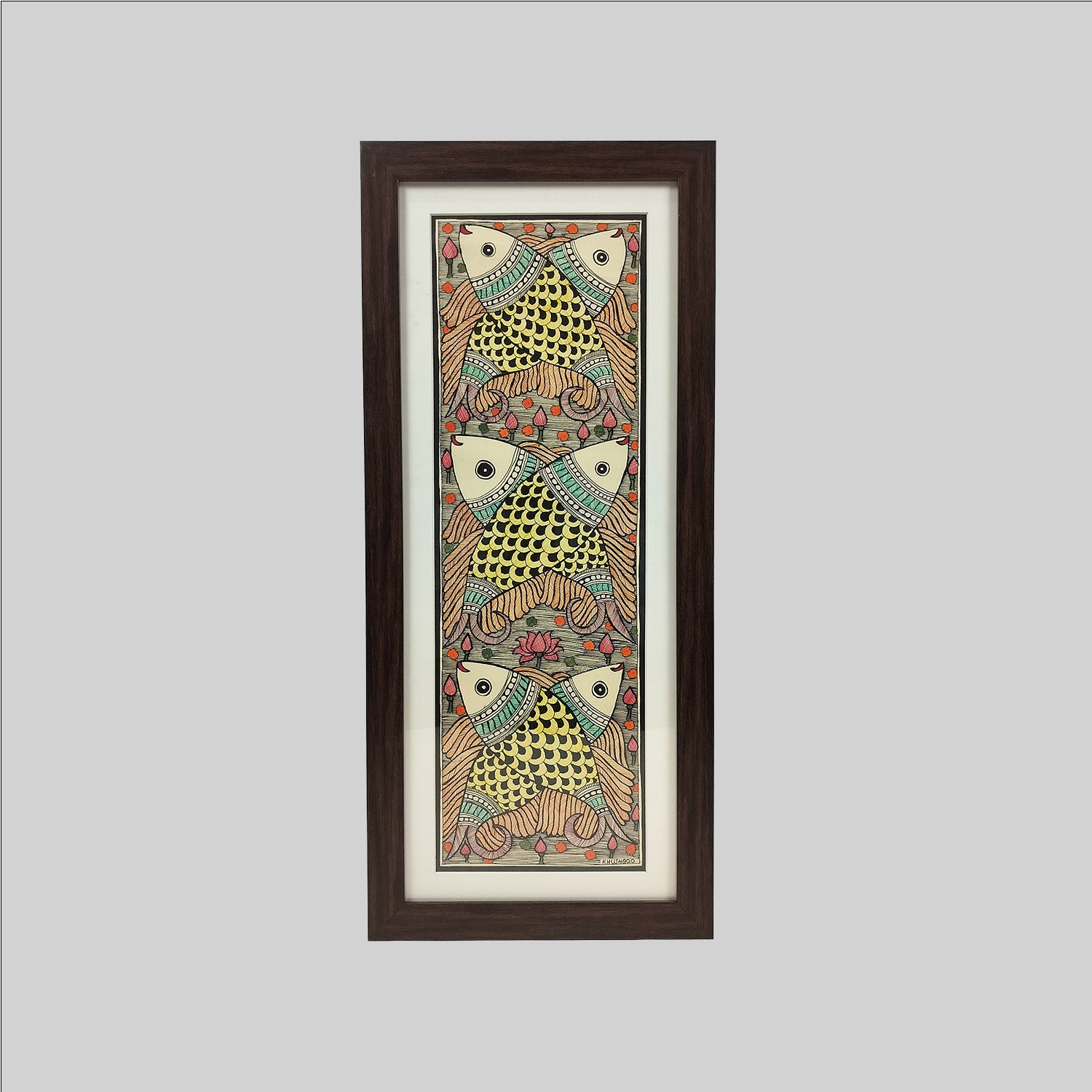 Madhubani Fish Ras Painting (Mount) - 7.50 in x 22 in