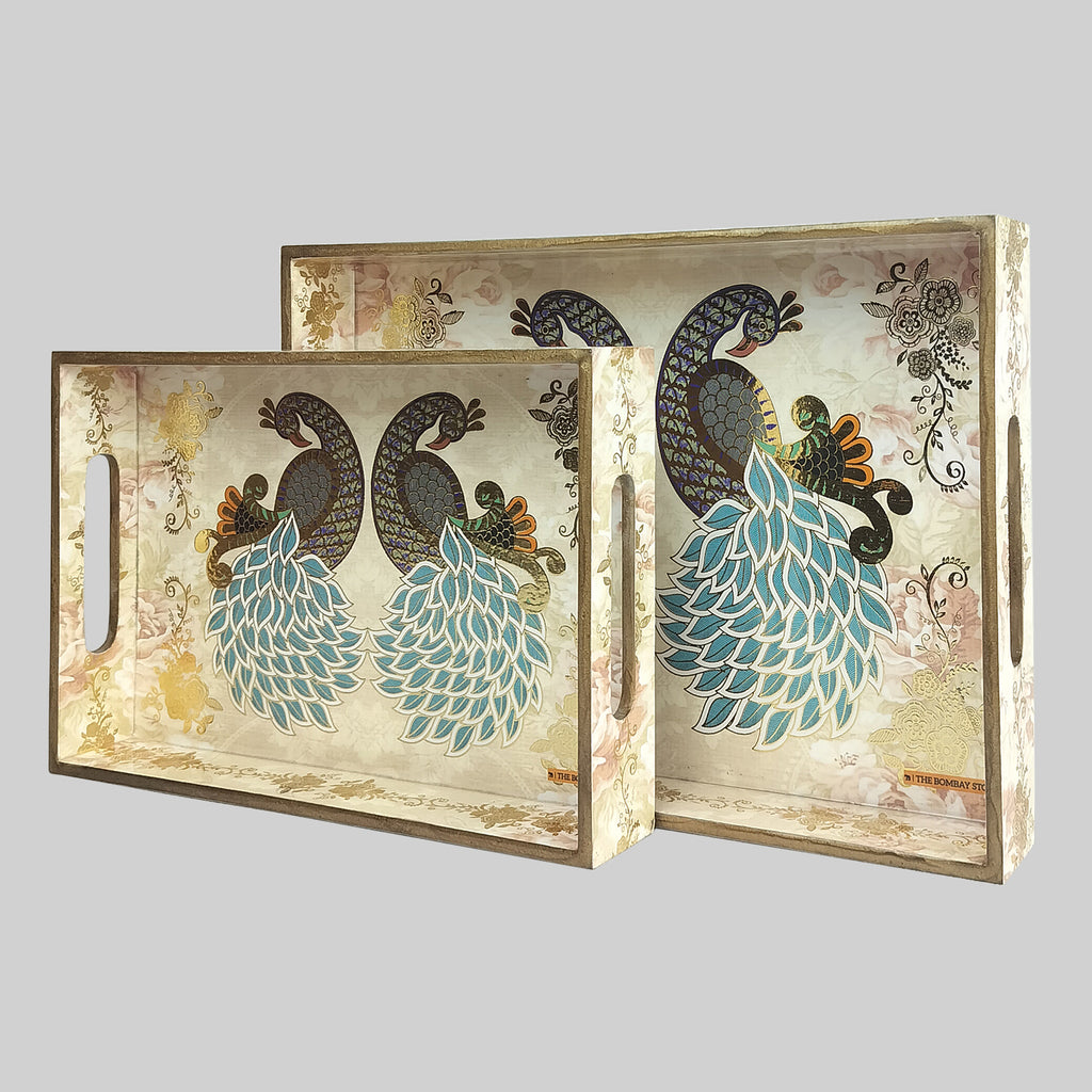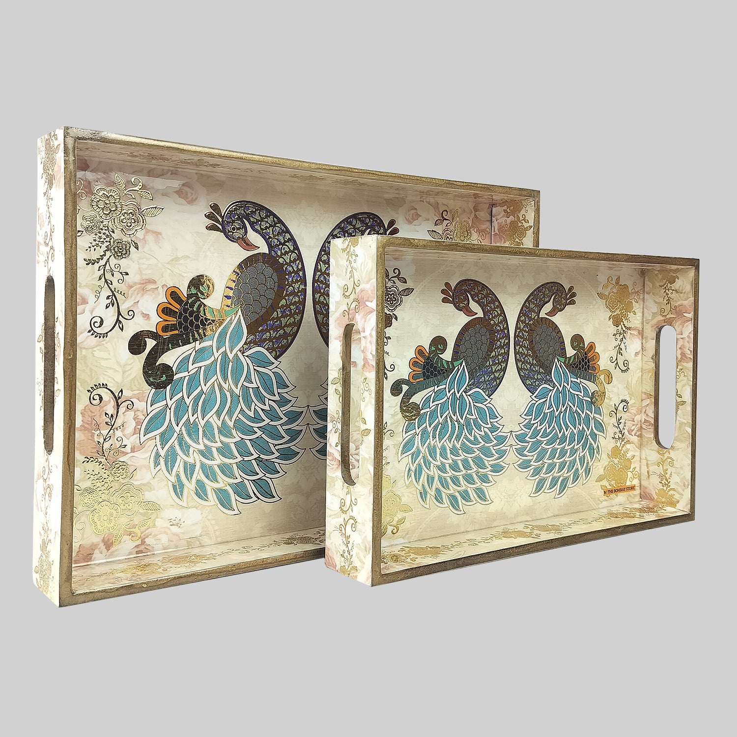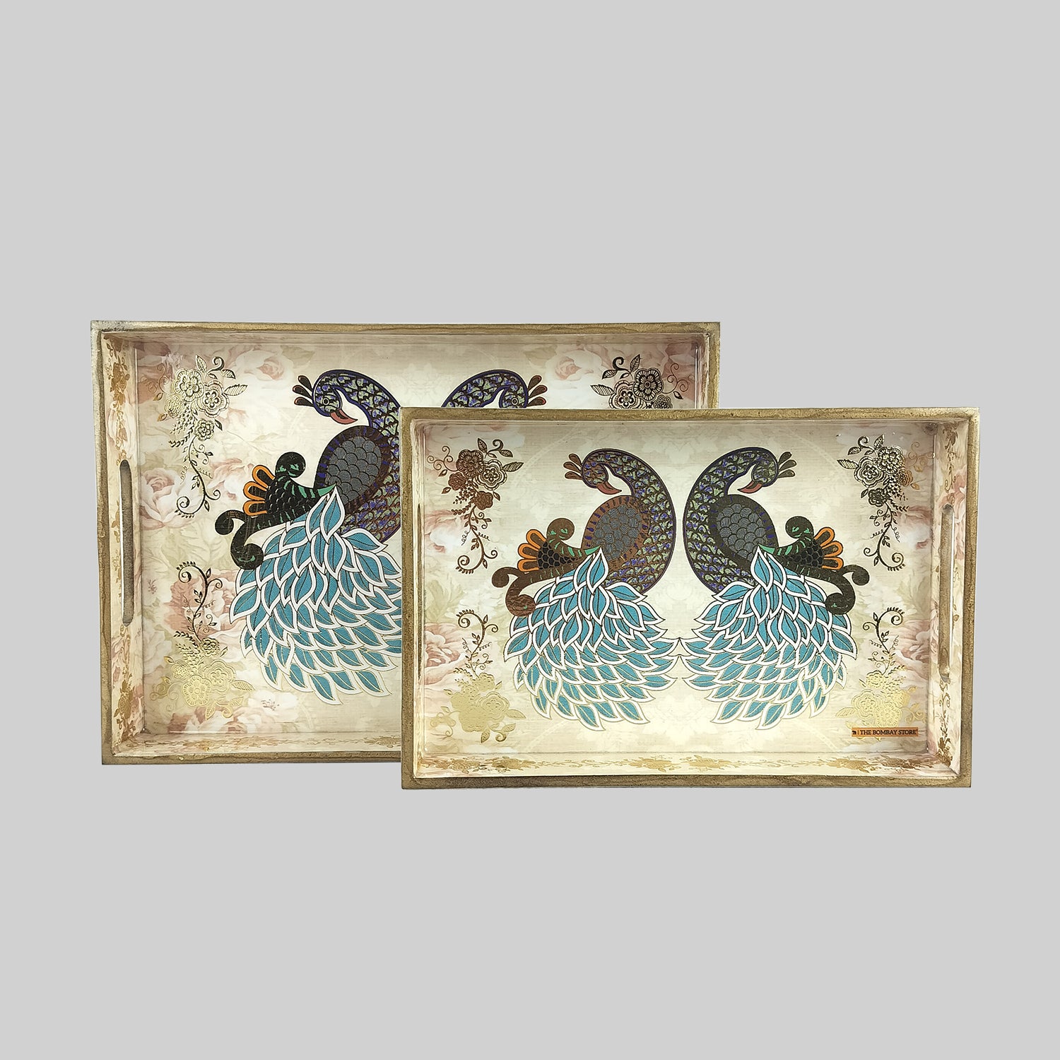 Regal Mayura Tray with Gold Foiling (Set of 2)