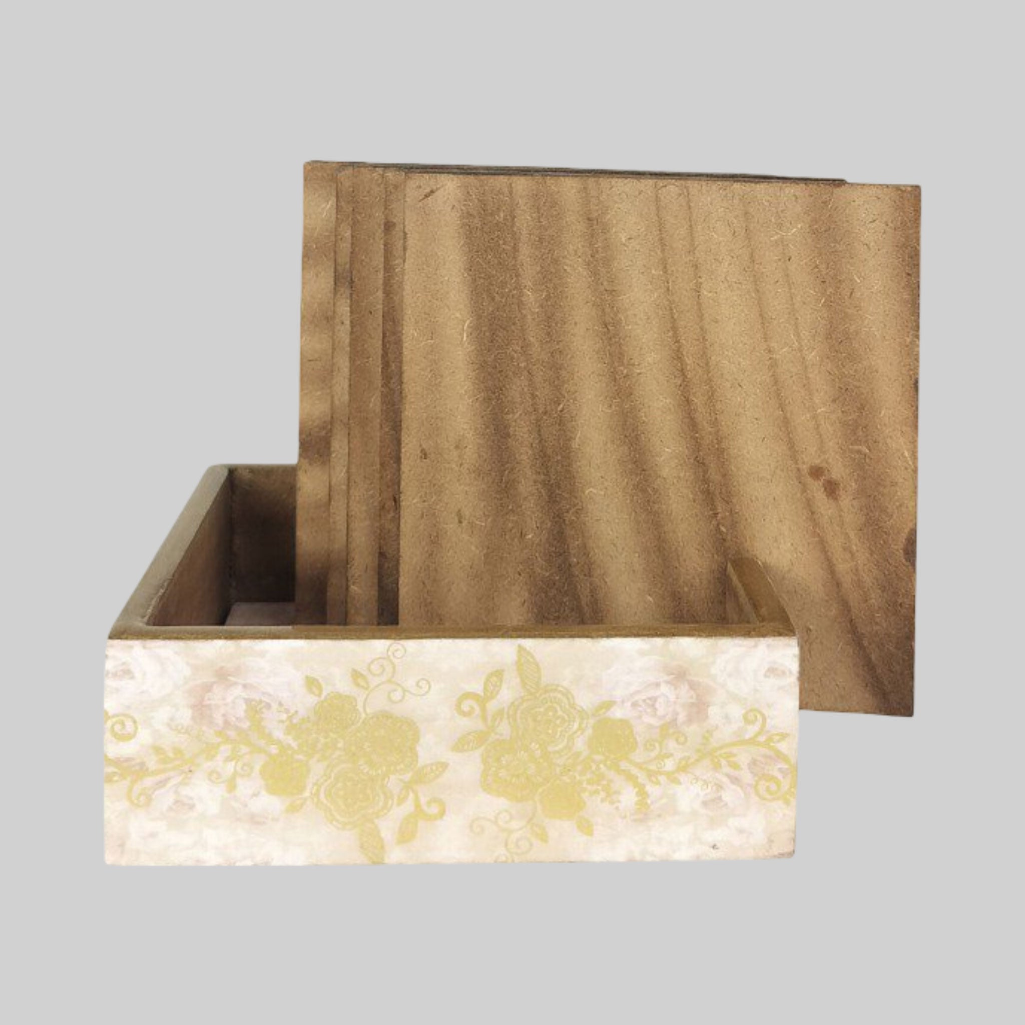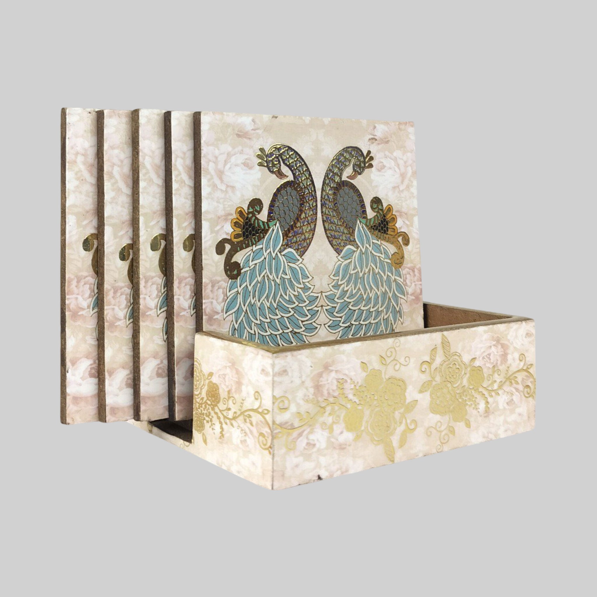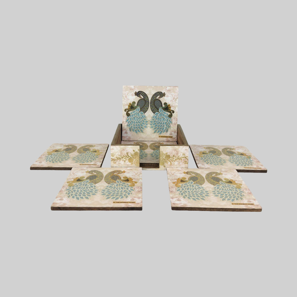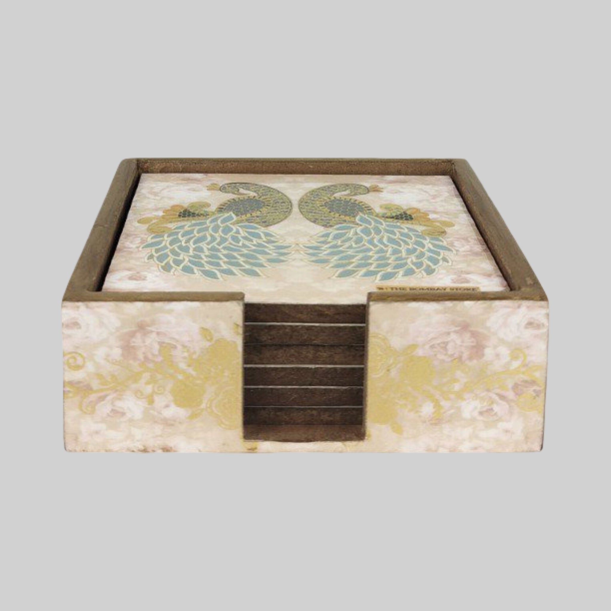 Regal Mayura Gold Foiled Square Coasters with Holder (Set of 6)