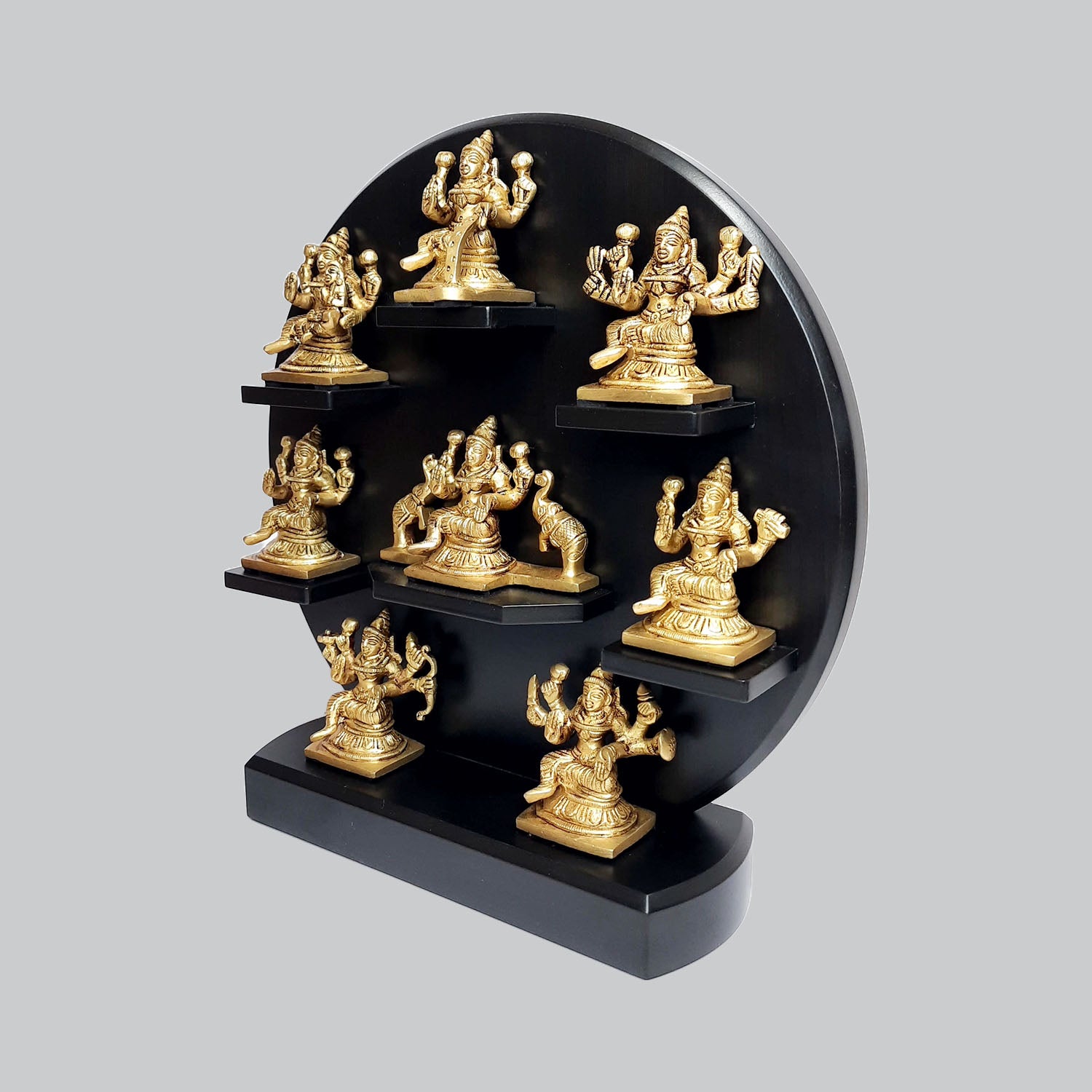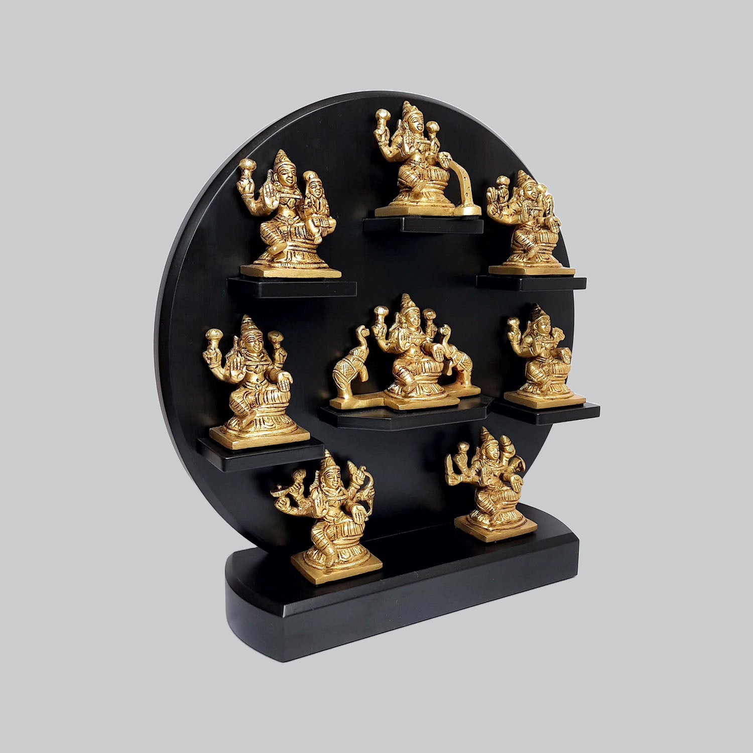 Brass Asthlaxmi with Wooden Round Stand 12 in