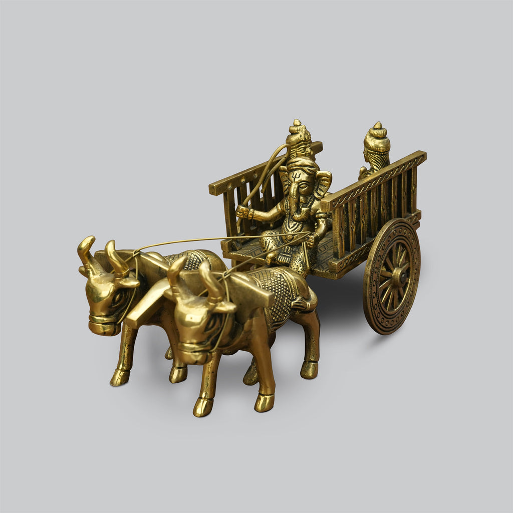 Brass Ganesha Riding Bullock Cart 6 x 11 in
