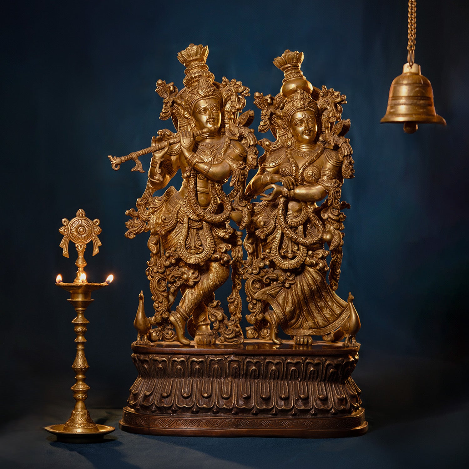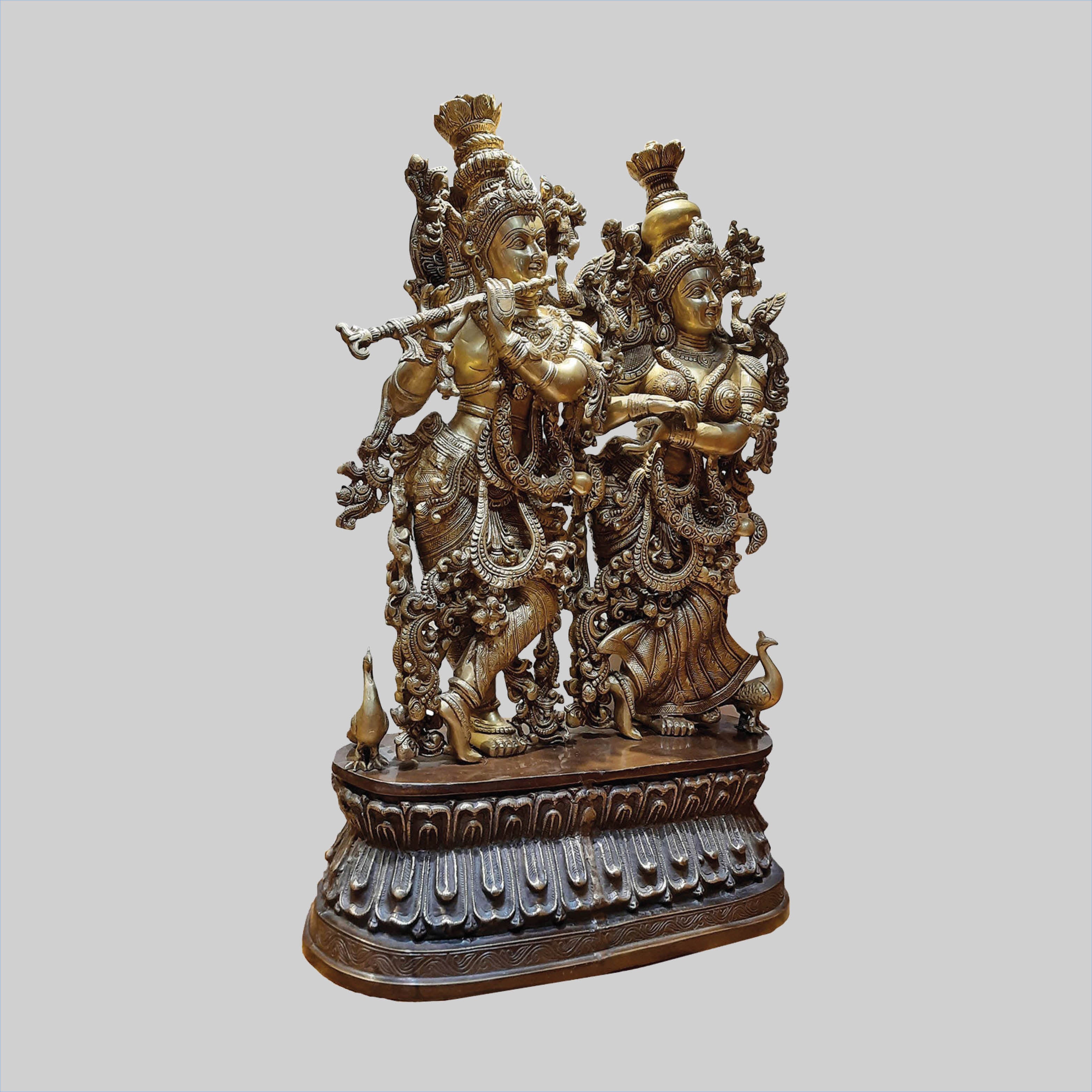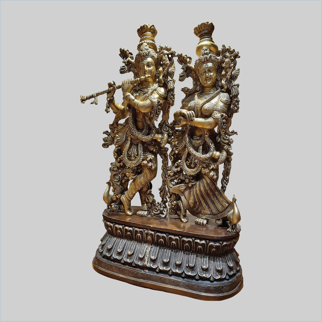 Brass Radha Krishna on Base with Two Tone Finish 19 in
