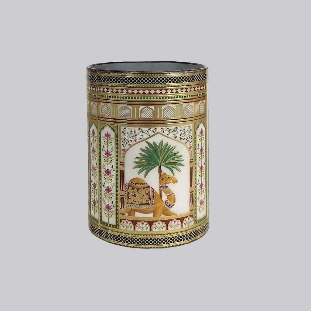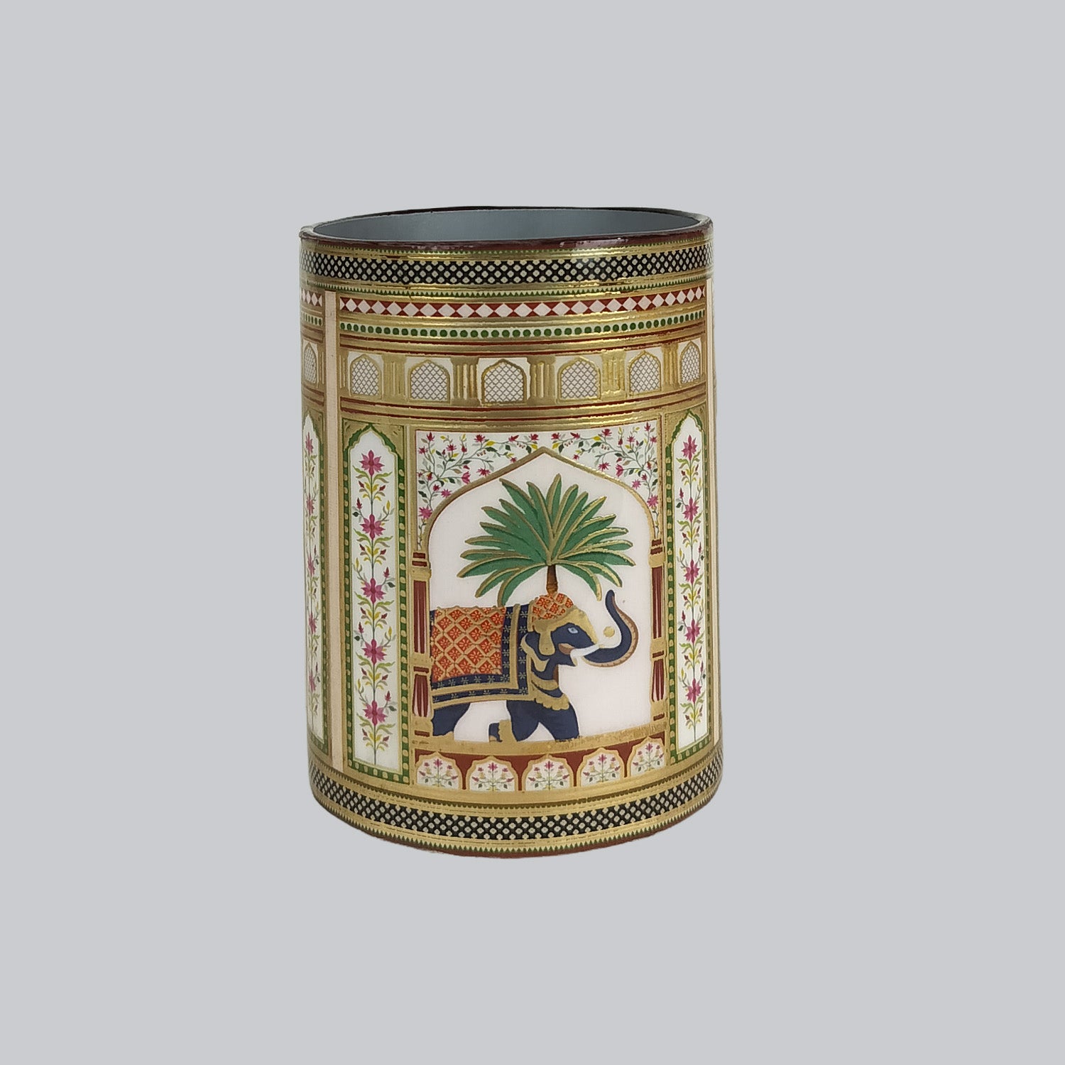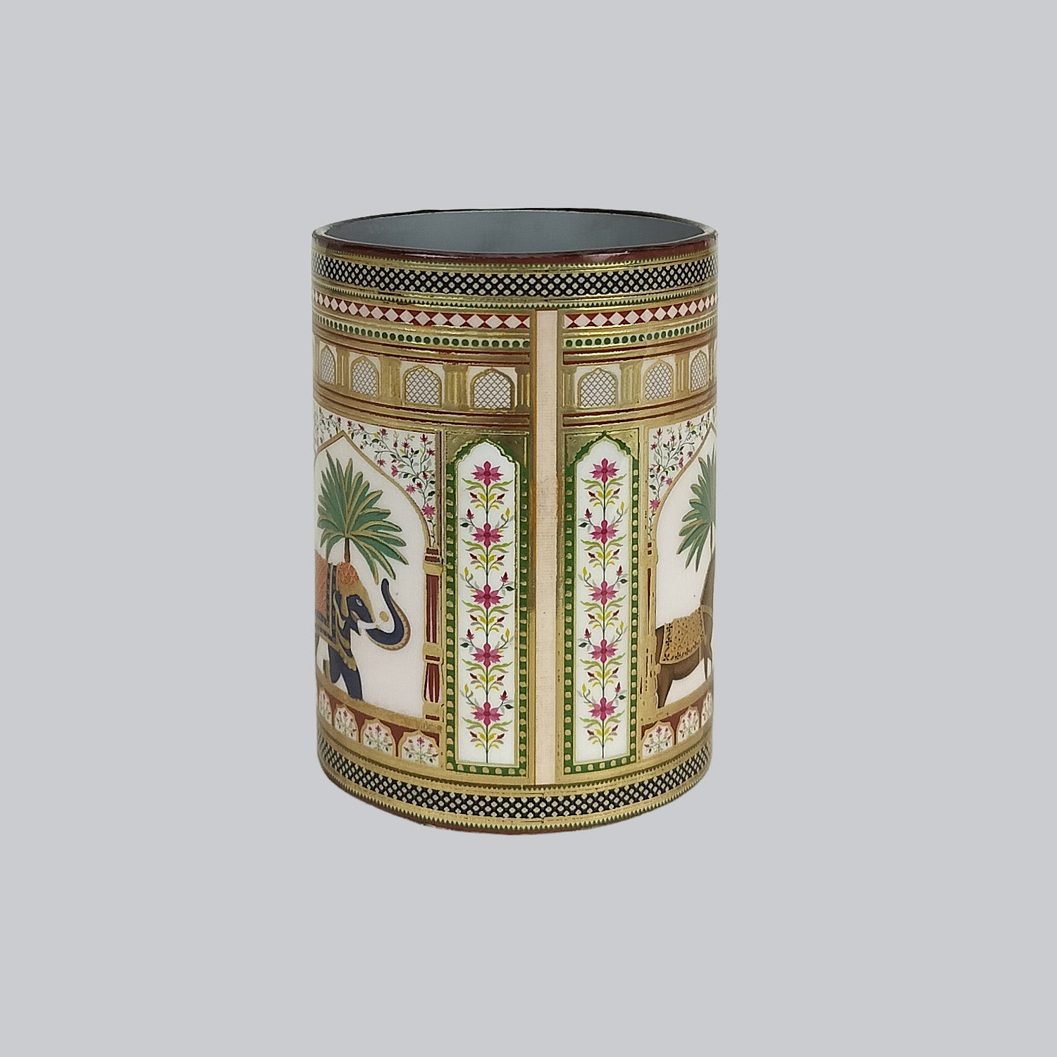 Royal Jharokha Round Penstand with Raised Gold Foiling