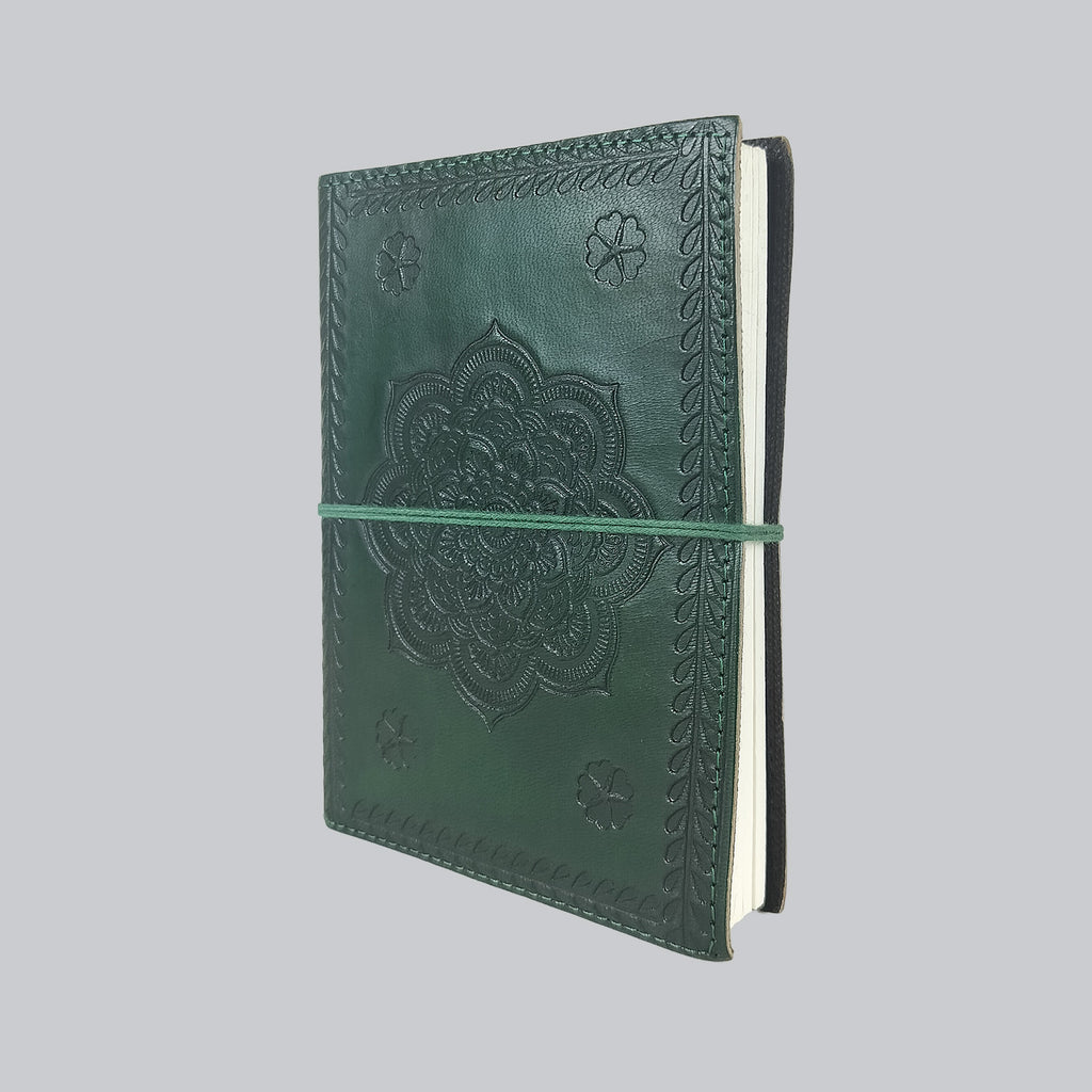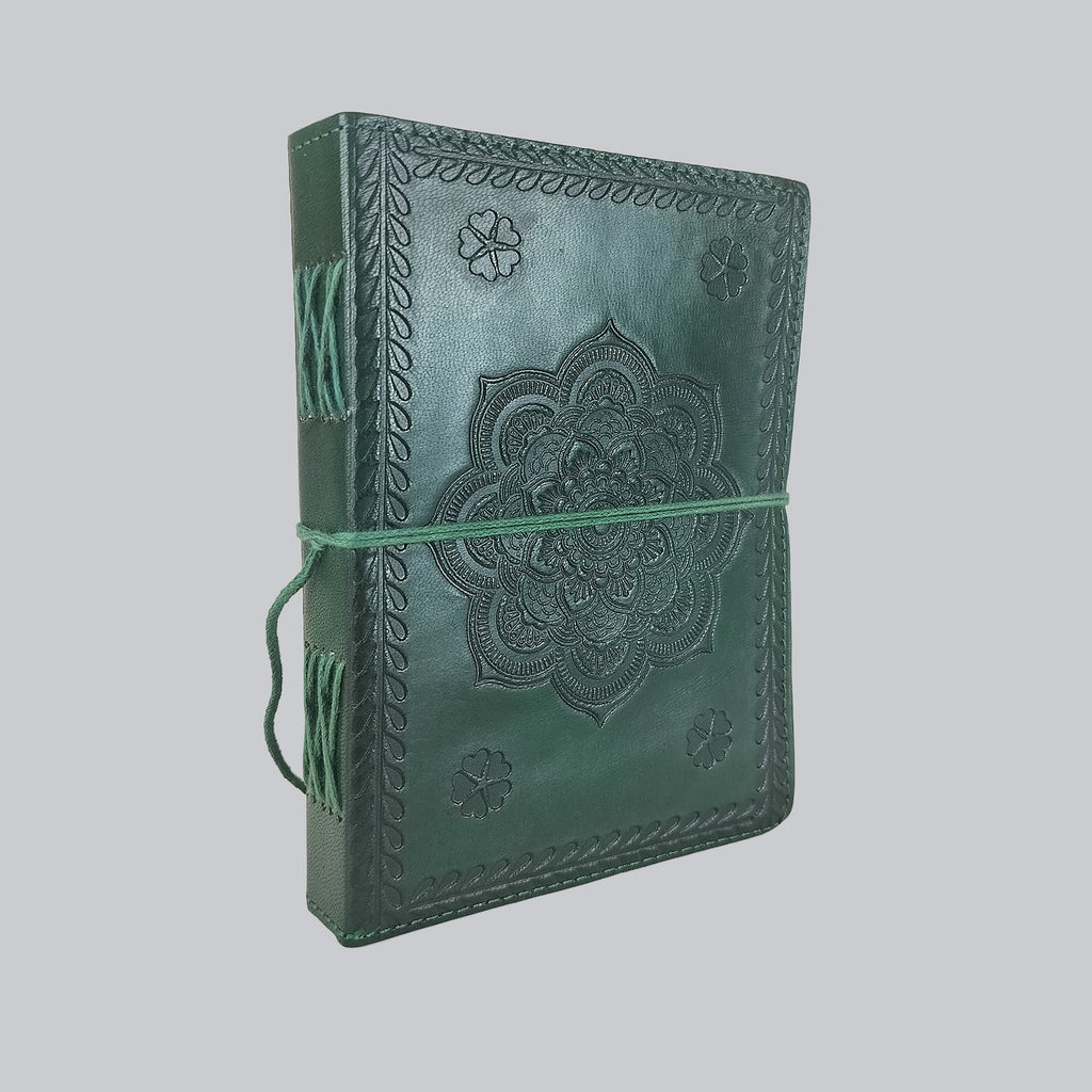 Leather Diary with Mandala Design (Green) 7 in x 5 in