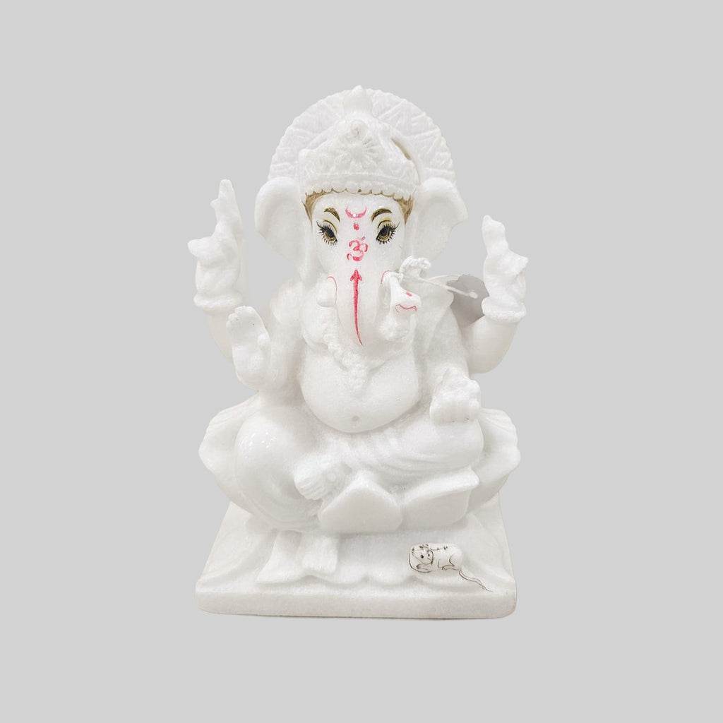 Marble Ganesha Sitting on Sihasan with Pillow 15 in