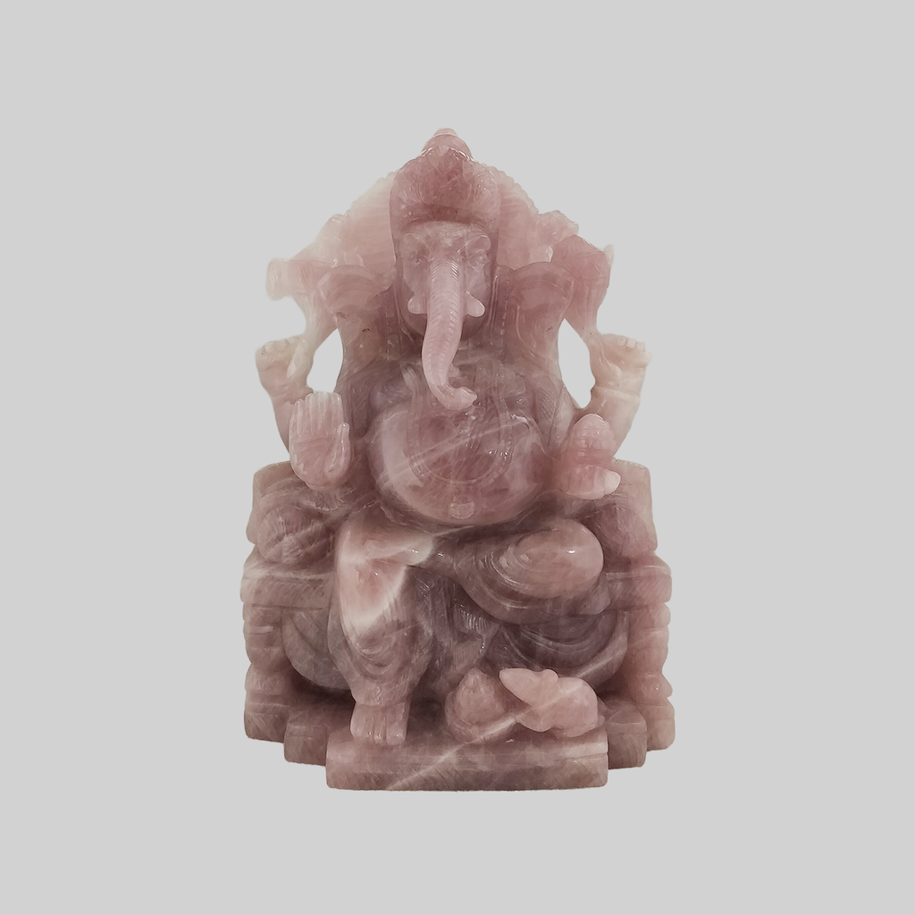 Rose Quartz Stone Pooja Ganesha 12 in