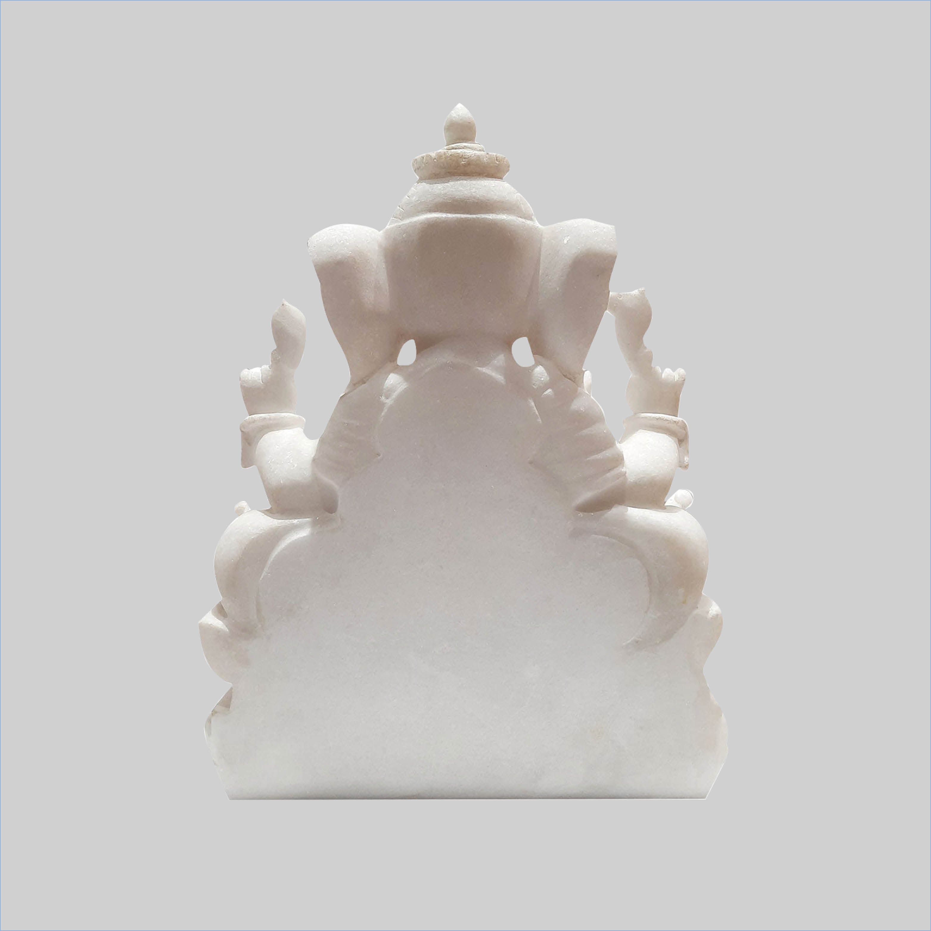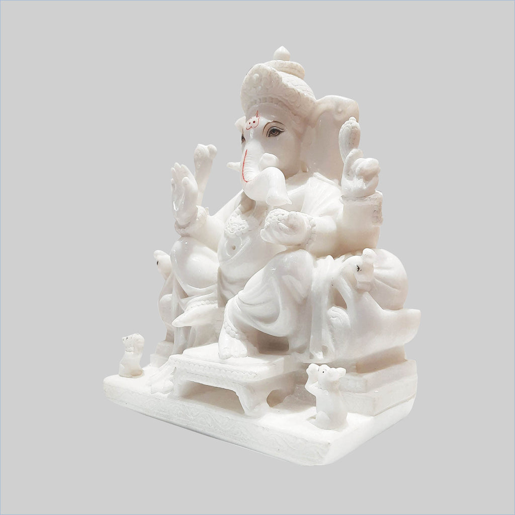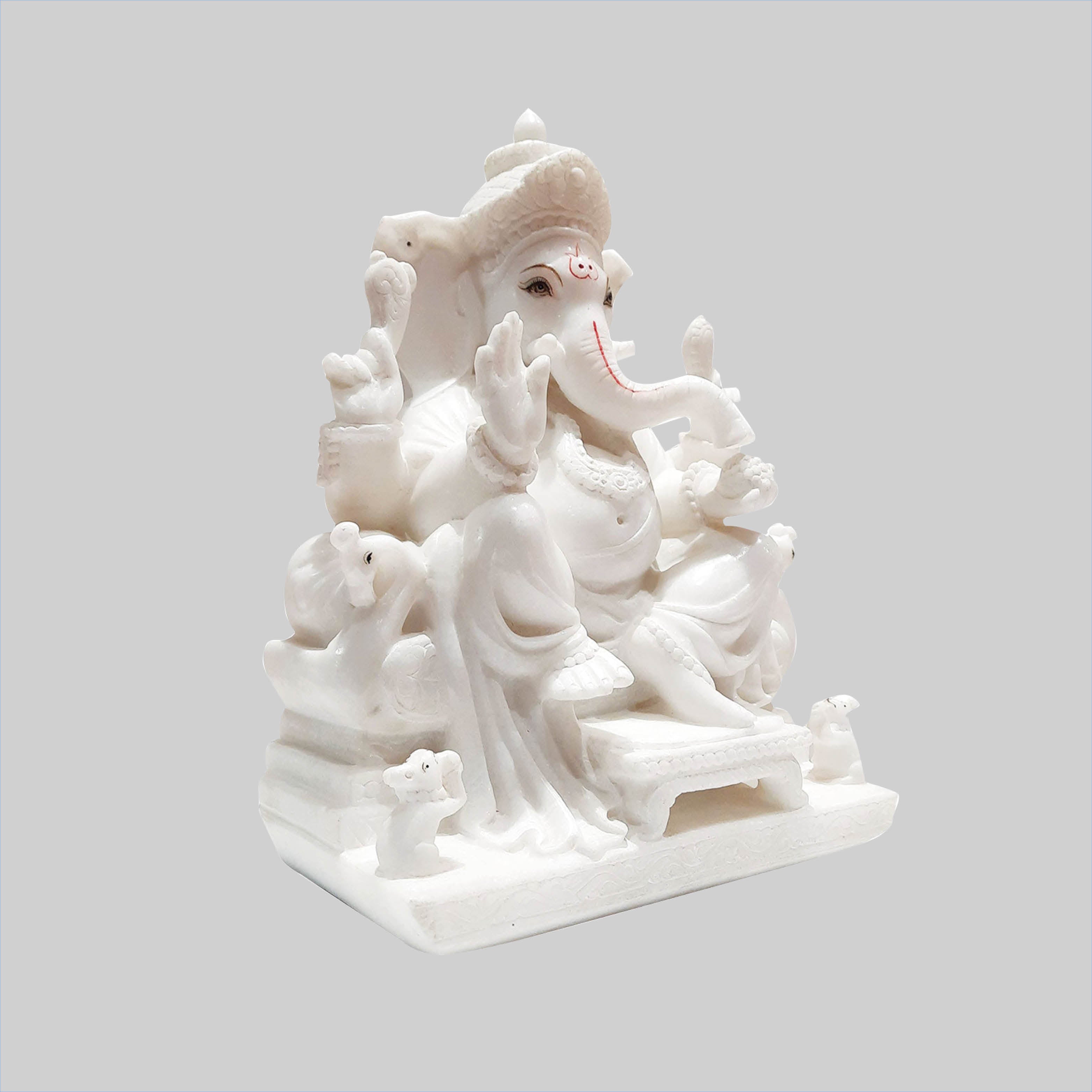 Marble Ganesha Sitting on Sihasan with Pillow 15 in