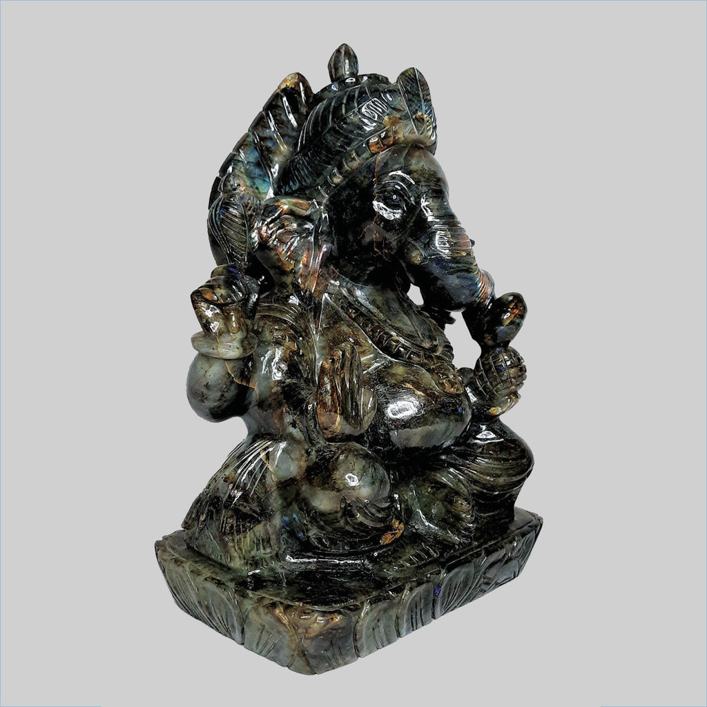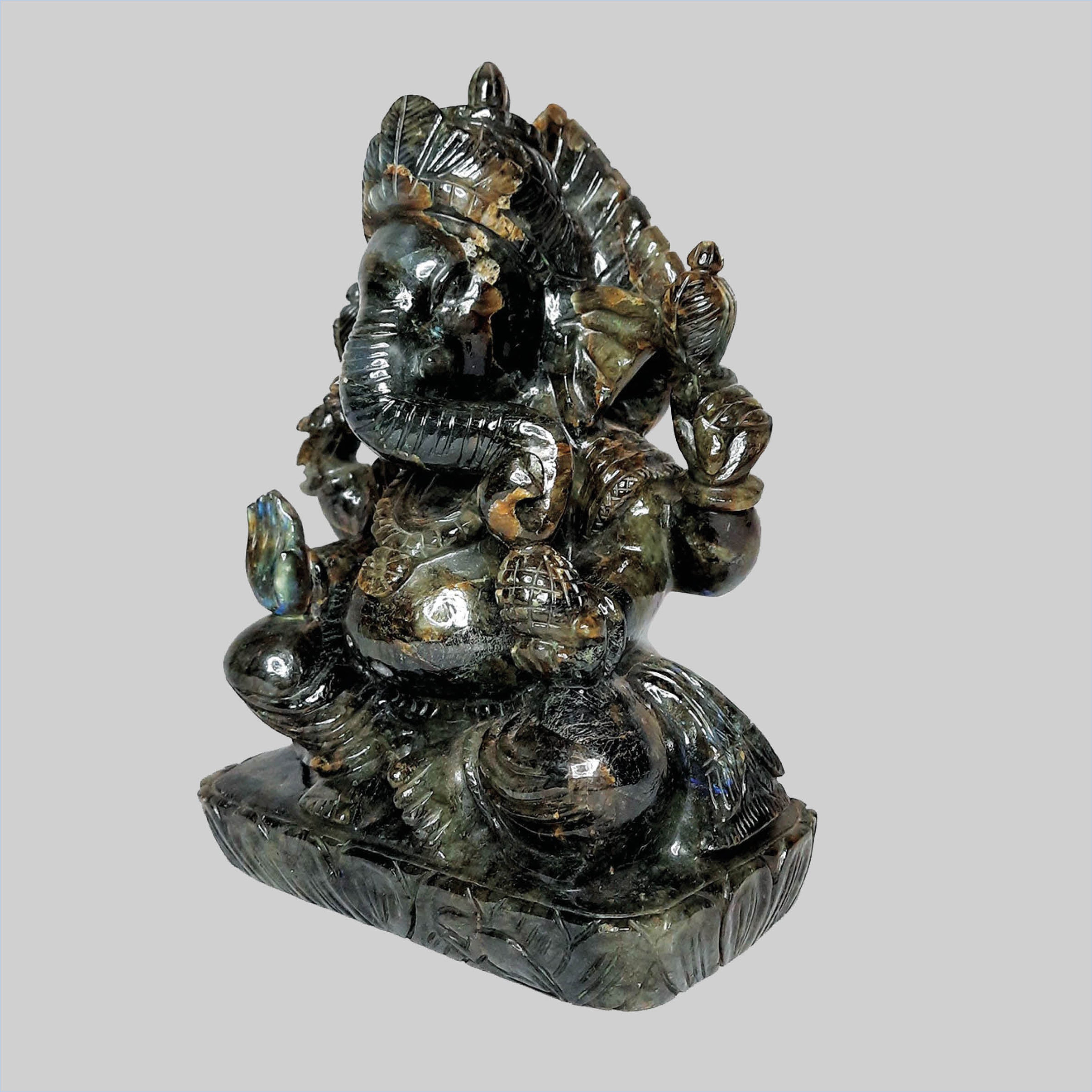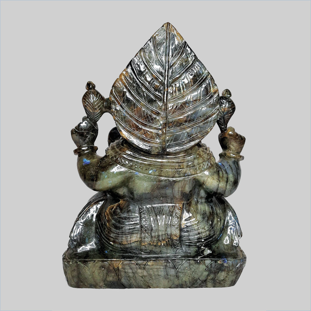 Labradorite Stone Sitting Ganesha with Velvette Box 10 in