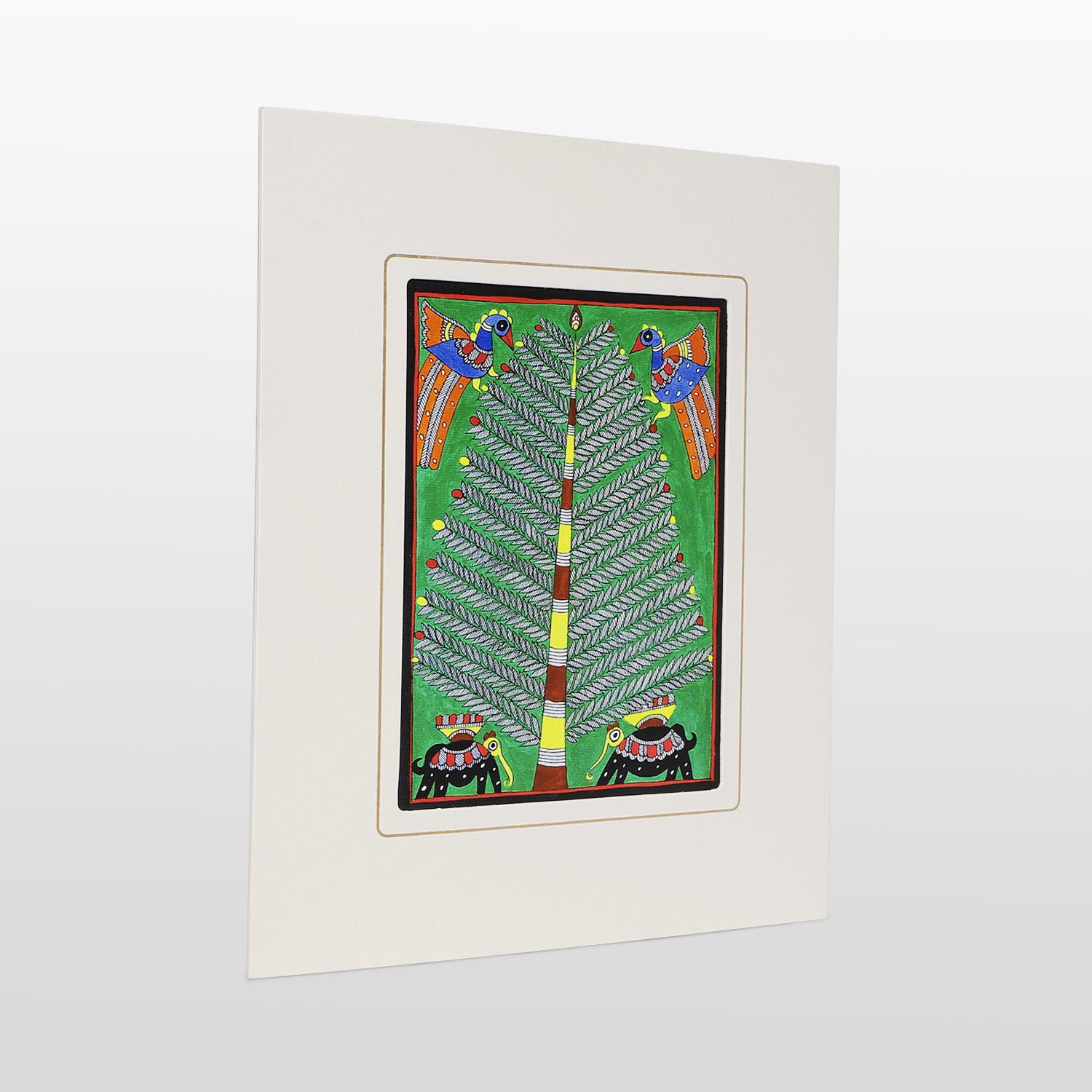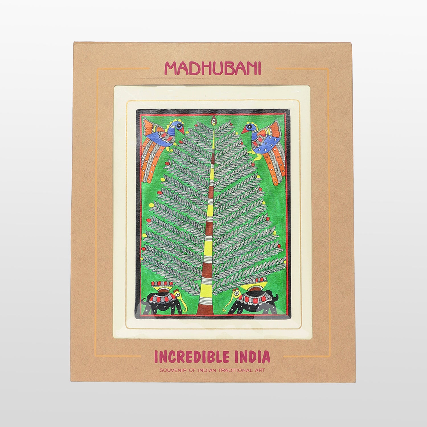 Mount Board Madhubani Art Peacock and Elephant Print 12 in x 9.5 in