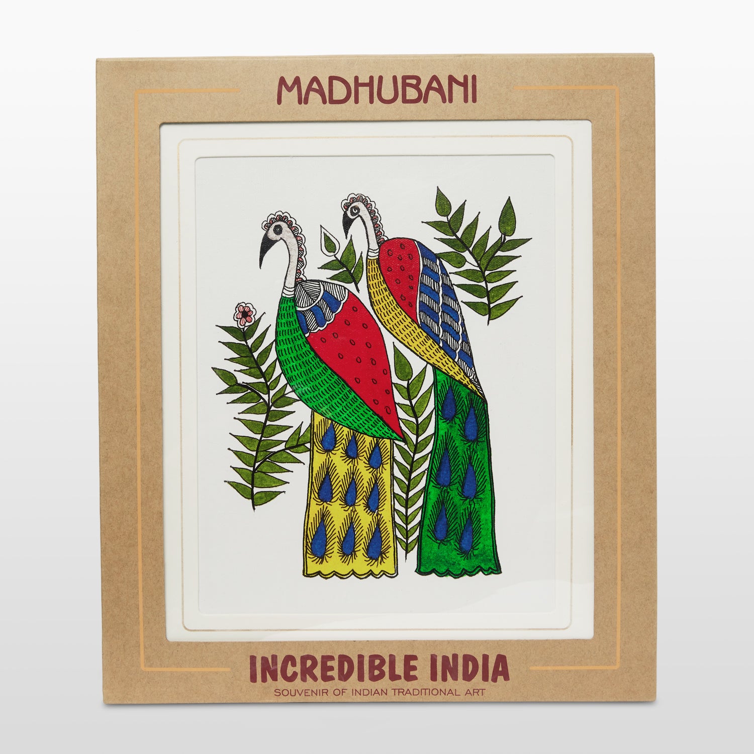 Mount Board Madhubani Art Two Colorful Peacock Print 12 in x 14 in