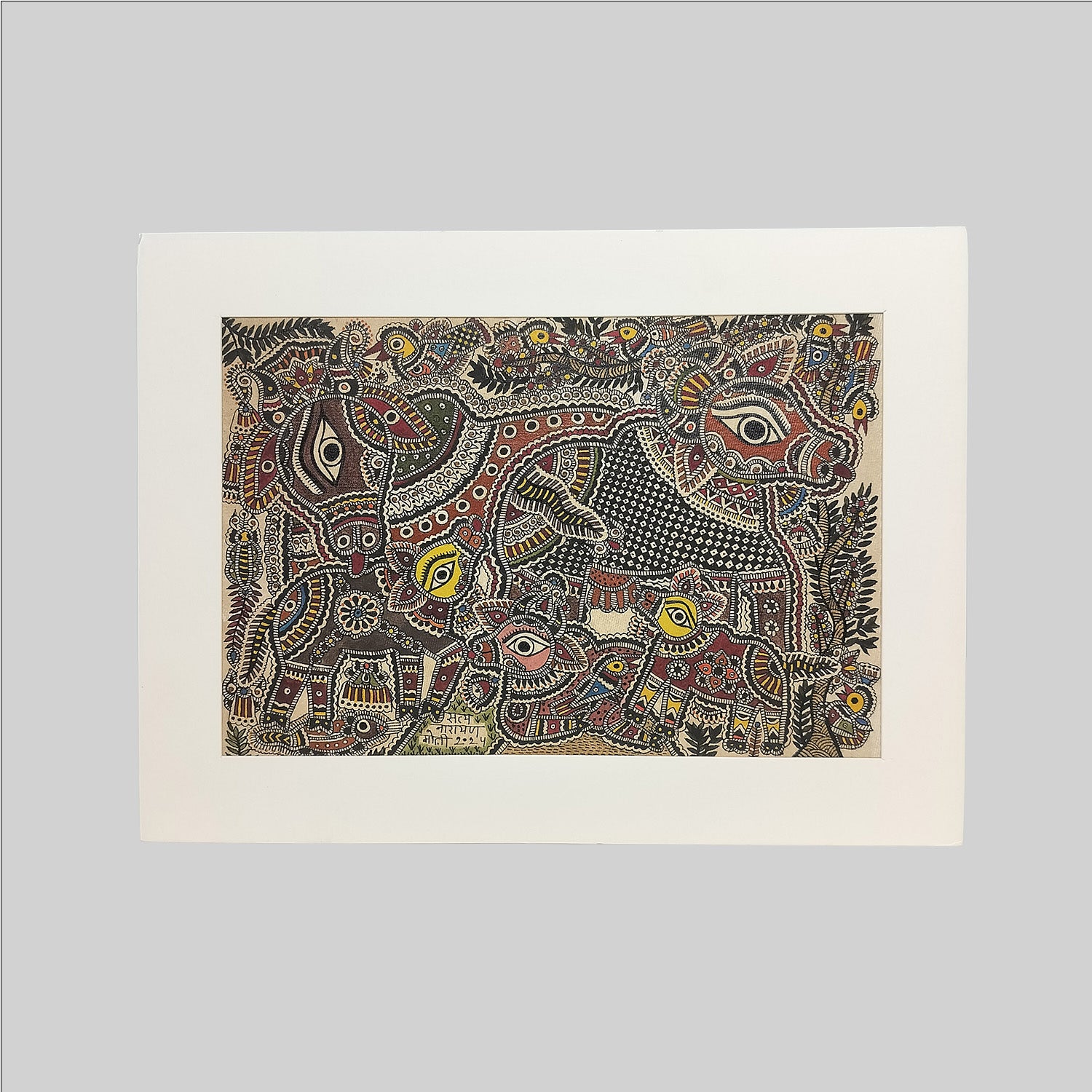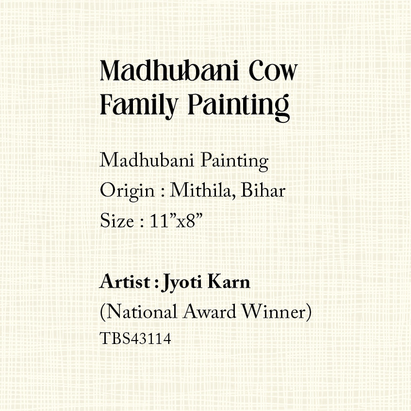 Madhubani Cow Family Painting (Mount) - 11 in x 8 in