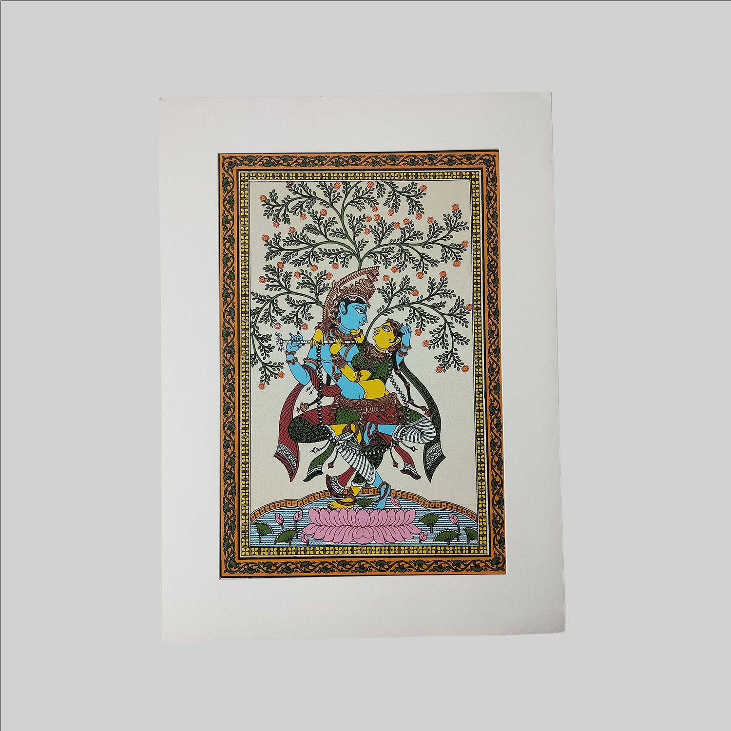 Pattachitra Radha Krishna Painting (Mount) - 15 in x 10 in
