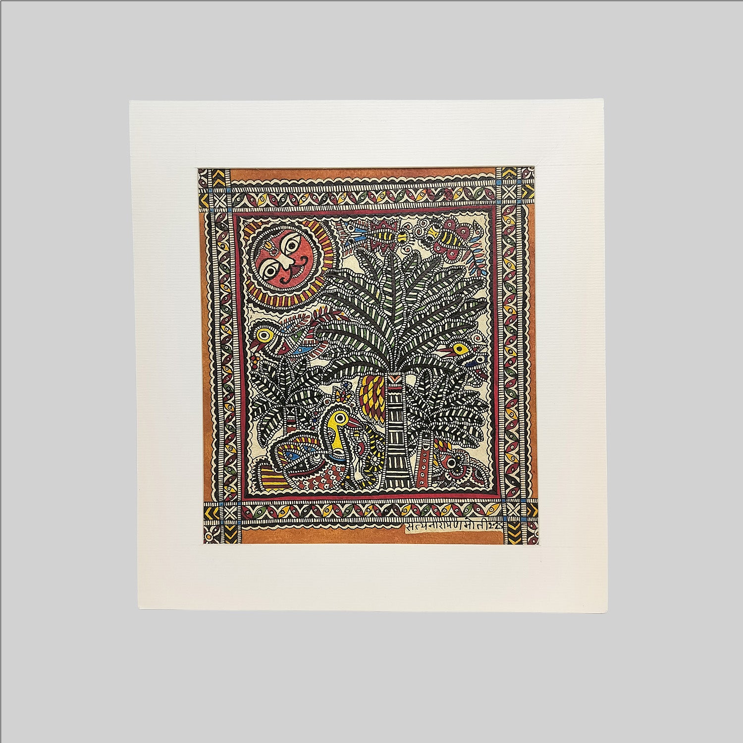 Madhubani Banana Tree Painting (Mount) - 8 in x 8 in