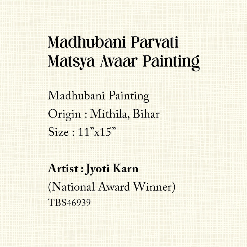 Madhubani Parvati Matsya Avatar Painting (Frame) - 11 in x 15 in