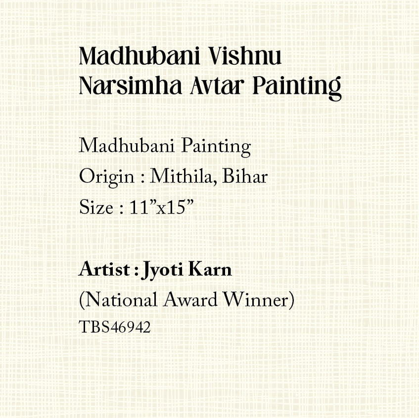 Madhubani Vishnu Narsimha Avtar Painting (Frame) - 11 in x 15 in