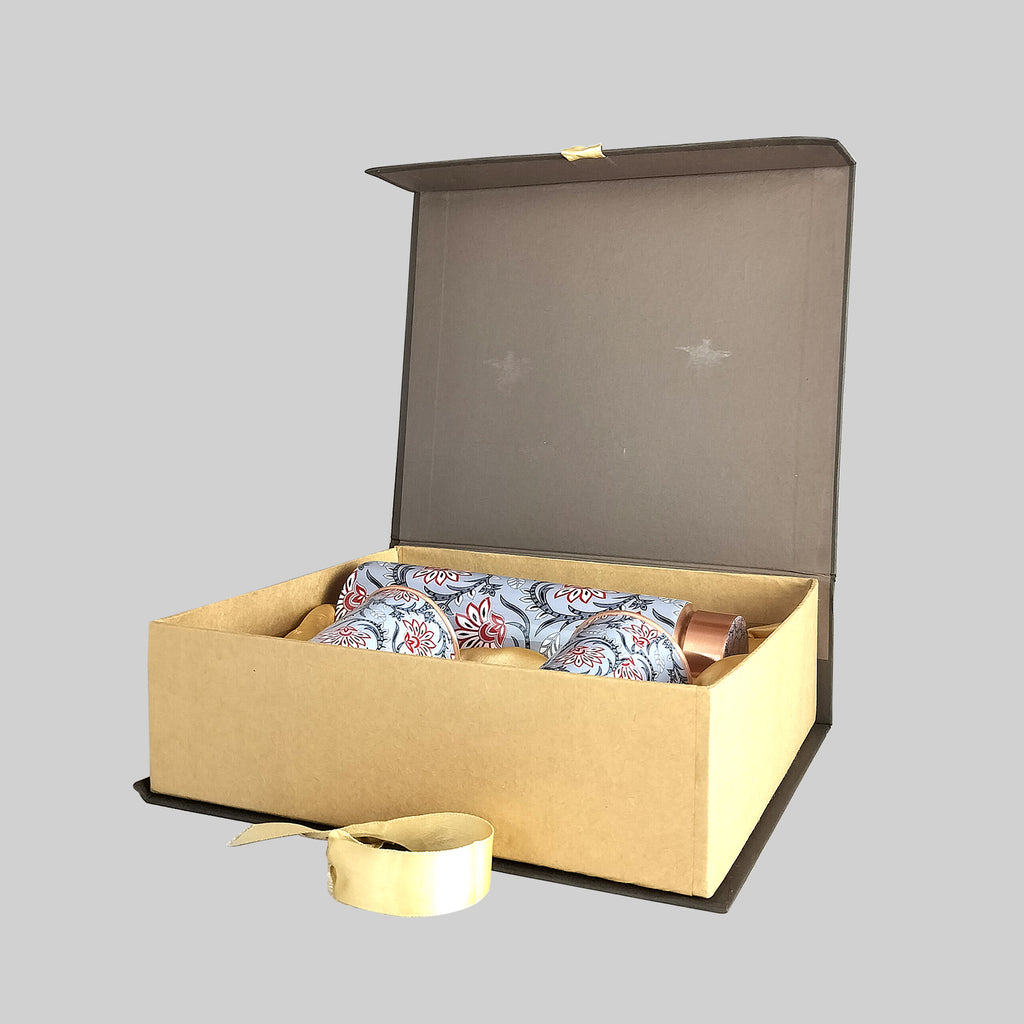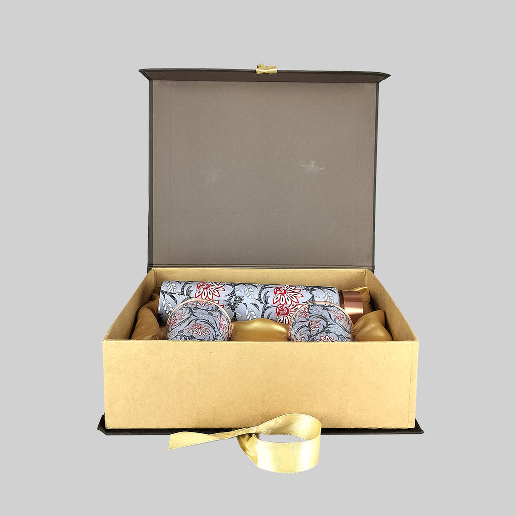 Floral Grey Copper Bottle with 2 Glasses in Gift Box