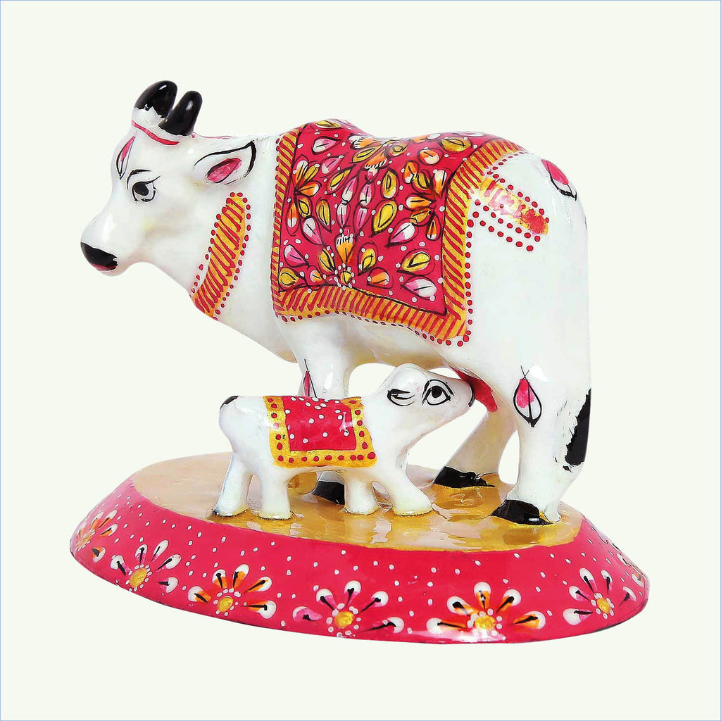 Metal Enamel Handpainted Cow with Calf 3 in